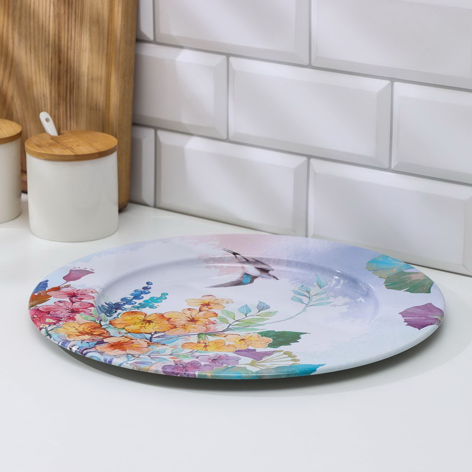 Поднос "Птицы", d=33 см, металлический, 33х33х1.5 см., Китай