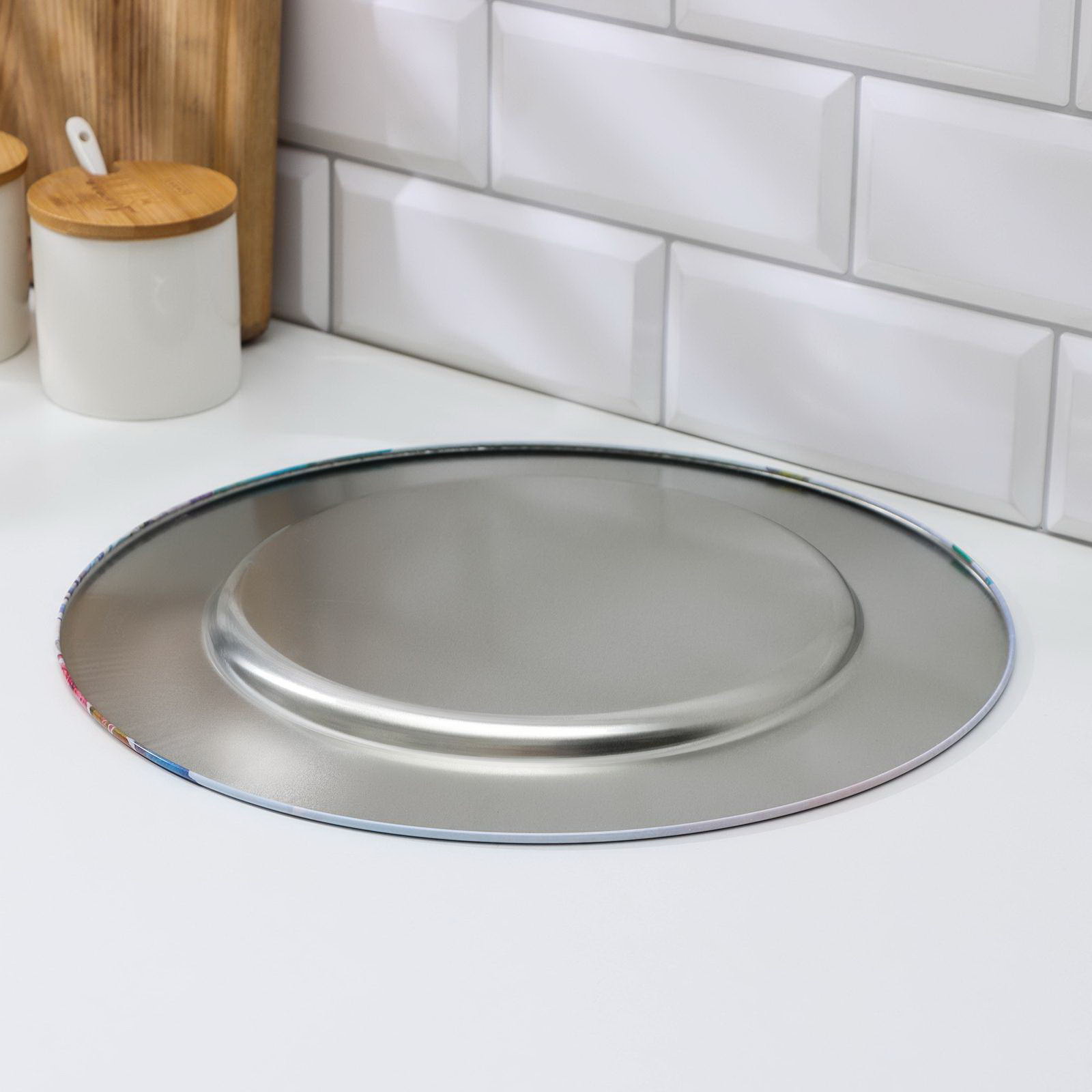Размер упаковки: 33 x 1 x 33 см. tnved: 7323990000 Рисунок: Да Цвет: Разноцветный Поднос – практичная вещь, которую с давних пор используют хозяйки для подачи угощения на стол, как подставку под различные предметы. Воспользовавшись подносом можно поесть в одиночку или вдвоем, не сервируя стол, перенести ужин на журнальный столик перед телевизором. Часто таким образом подают чай или кофе, а романтичные натуры могут даже взять поднос в постель, чтобы насладиться совместным завтраком. Поднос выполнен из жести. Уход: Протирайте влажной тряпочкой или губкой, после вытирайте насухо. Не допускается мытьё в посудомоечной машине. | ||