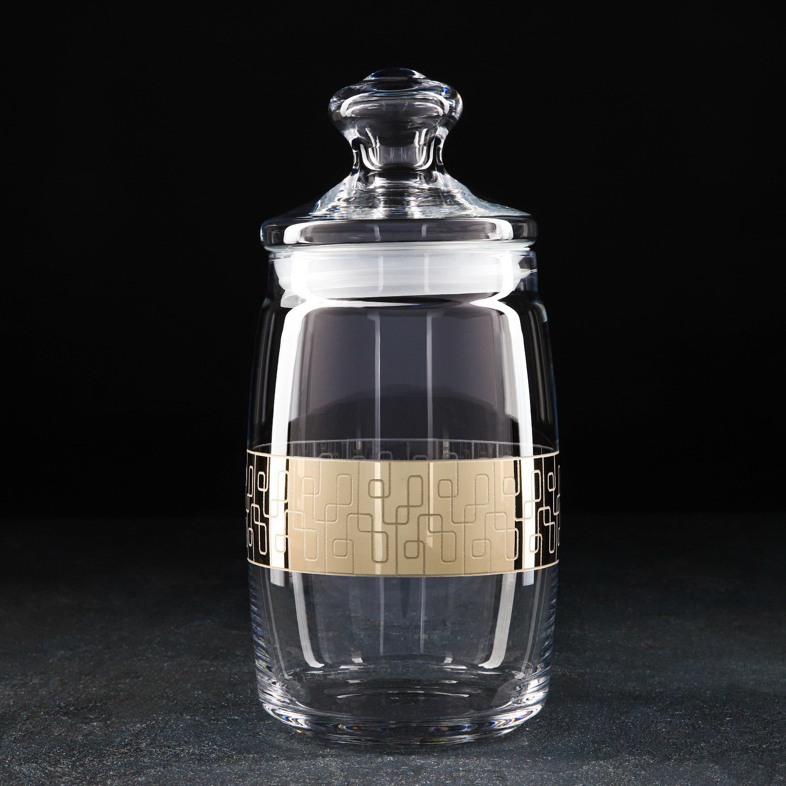 Банка для сыпучих продуктов "Геометрия", 1.1 л, с гравировкой и напылением, цвет напыления золотой, 1100 мл., GiDGLASS, Россия