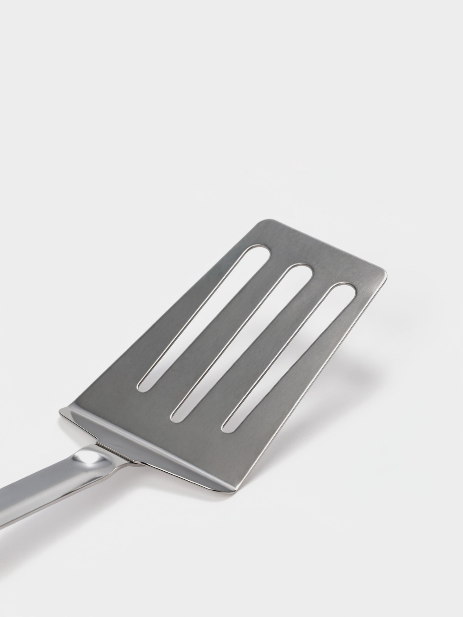 Размер упаковки: 8 x 3 x 46 см. tnved: 7323930000 Температурное ограничение: Нет Можно мыть в посудомоечной машине: Нет Цвет: Серебристый Рисунок: Нет Материал ручки: Нержавеющая сталь Набор: Нет Эта кухонная лопатка из нержавеющей стали ваш надёжный помощник у плиты. Её длинная и прочная конструкция бережно справляется с переворачиванием и перемешиванием, защищая ваши руки от брызг и жара. Инструмент создан для ежедневной работы с любимыми блюдами: от нежных омлетов и котлет до аппетитных блинчиков и овощей на сковороде. Преимущества