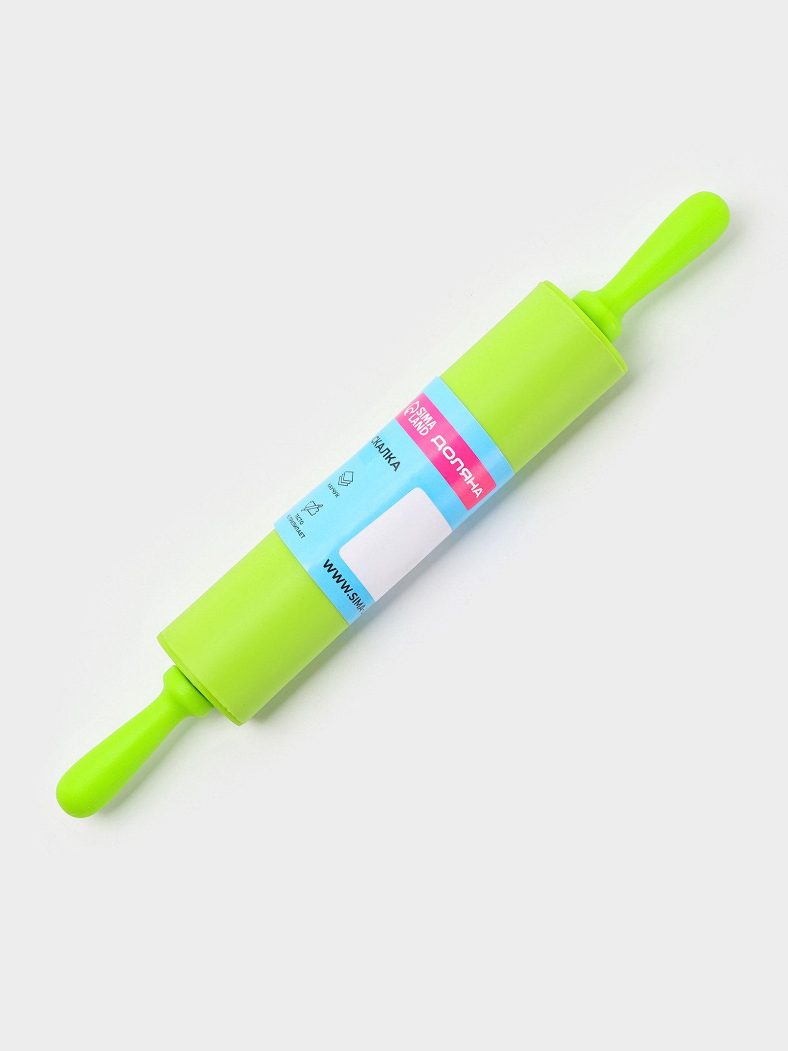 Размер упаковки: 4 x 4 x 30 см. Длина, см: 30 Цвет: Зелёный Особенности: Крутящиеся ручки Материал ручки: Силикон Материал рабочей части: Силикон Набор: Нет Длина рабочей части, см: 17.5 tnved: 3924100000 Скалка необходимый на кухне предмет. Изделие из силикона представляет собой усовершенствованную версию привычного инструмента. Преимущества: