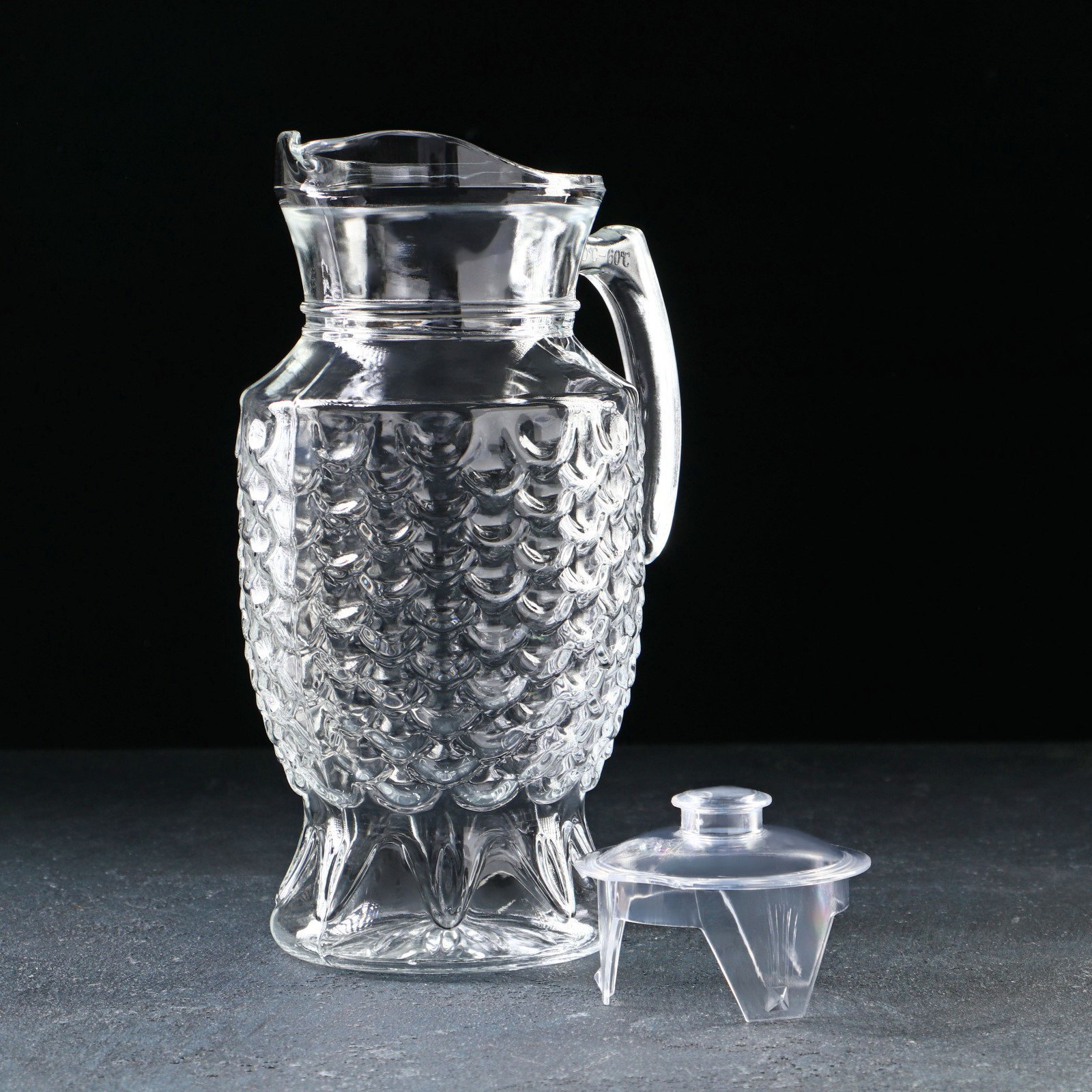 Размер упаковки: 13 x 26 x 15 см. Цвет: Прозрачный Рисунок: Нет Набор: Нет В наборе, шт.: 1 В наборе, шт.: 1 tnved: 7013500000 Особенности: Без особенностей Текстура: С рельефом Тематика: Однотонная Материал крышки: Пластик Можно мыть в посудомоечной машине: Да Запрет реализации по сегментам: 00000000485 Изящный кувшин выполнен из прочного рельефного стекла. Имеет удобную ручку и крышку, которая плотно закрывается и защищает напиток от попадания посторонних предметов. Прекрасно подойдёт для прохладительных напитков: лимонада, сока, газировки, воды. Можно использовать в будние дни, также будет гармонично смотреться на любом торжественном мероприятии. Кувшин можно мыть в посудомоечной машине. | ||