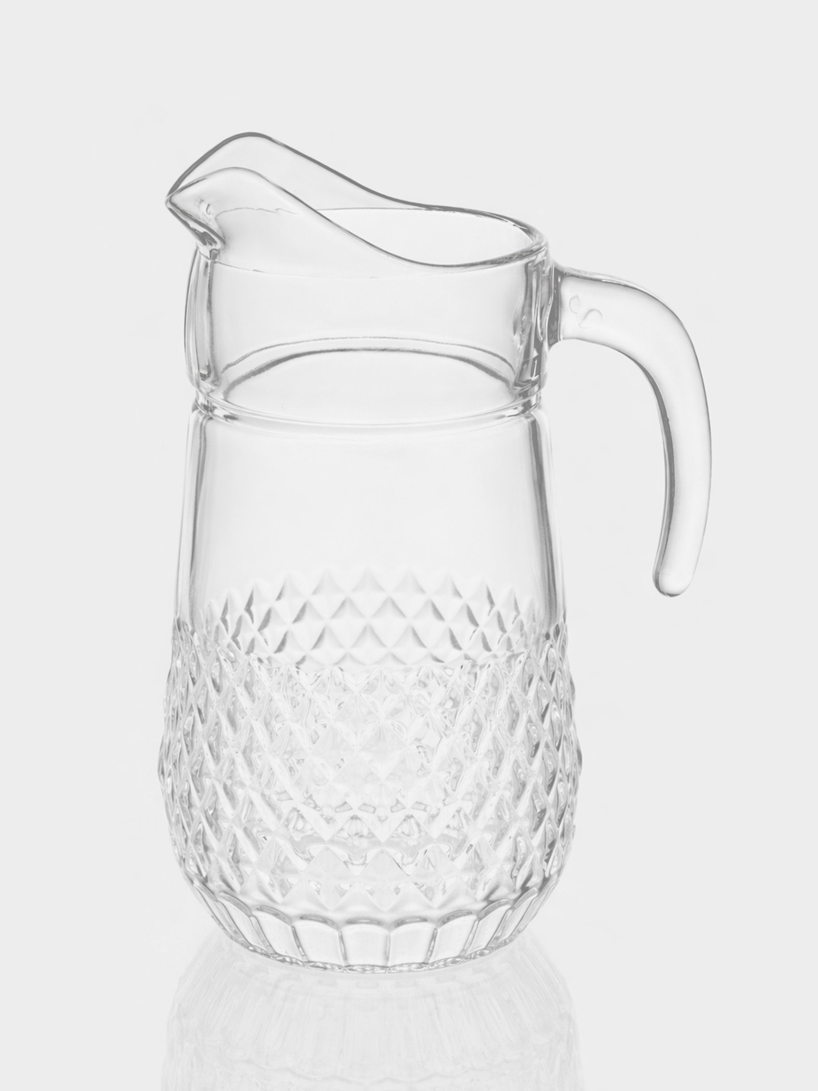 Размер упаковки: 15 x 25 x 15 см. tnved: 7013500000 Температурное ограничение: Нет Цвет: Прозрачный Тематика: Однотонная Особенности: Без особенностей Текстура: С рельефом Рисунок: Нет Можно мыть в посудомоечной машине: Да Можно использовать в СВЧ-печи: Нет Этот прозрачный кувшин для воды с рельефным узором станет элегантным и практичным центром вашего стола. Его классическая форма и игра света на гранях напоминают хрустальные сервизы, создавая ощущение праздника даже в будний день. Кувшин идеально подходит для подачи воды, соков, домашних холодных напитков или просто как стильный элемент сервировки. Преимущества