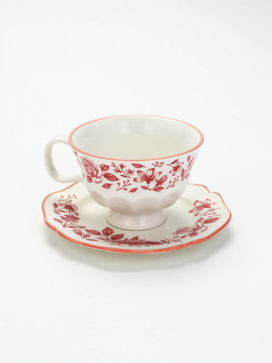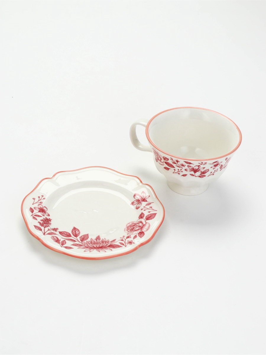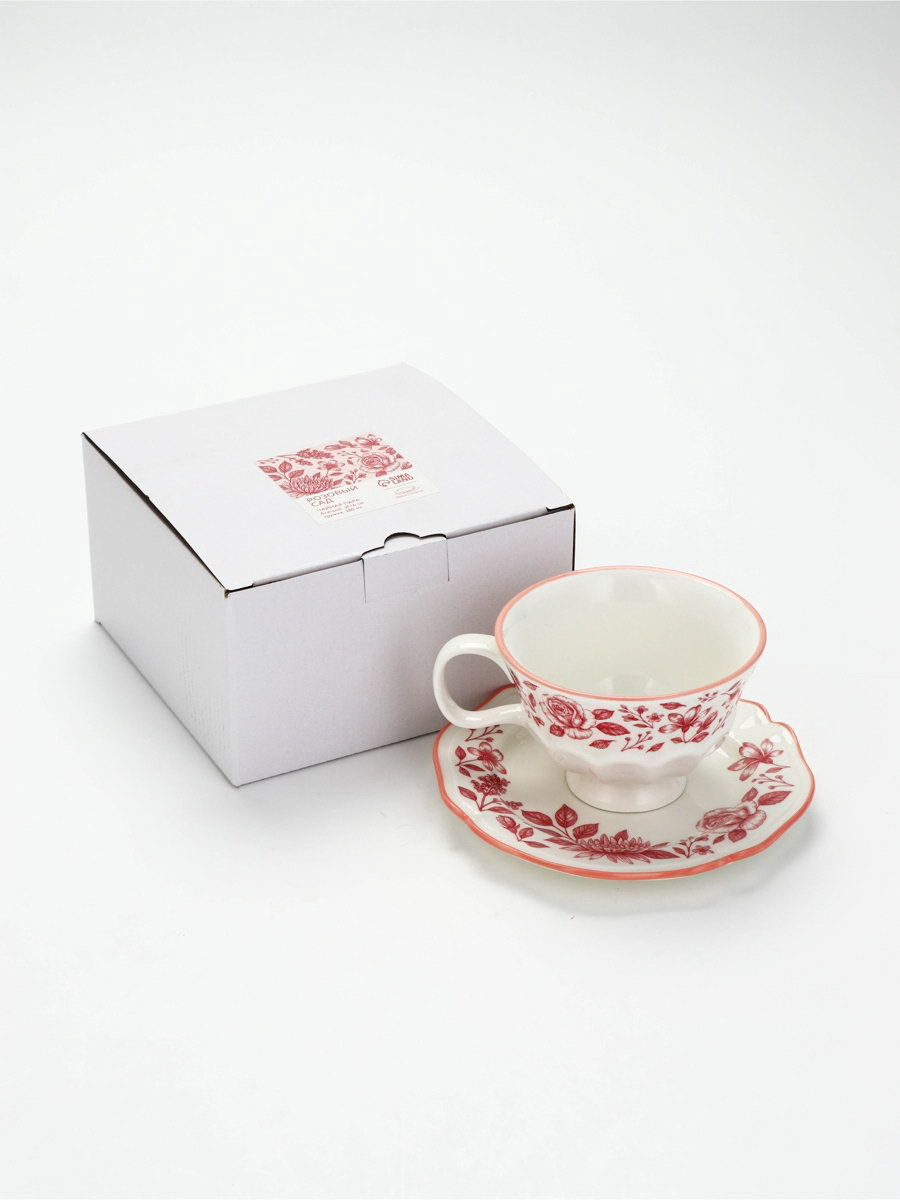 Чайная пара "Розовый сад": кружка 280 мл, блюдце d=16 см, ручная работа, 16х16х8 см., Dolce Ceramo., Китай