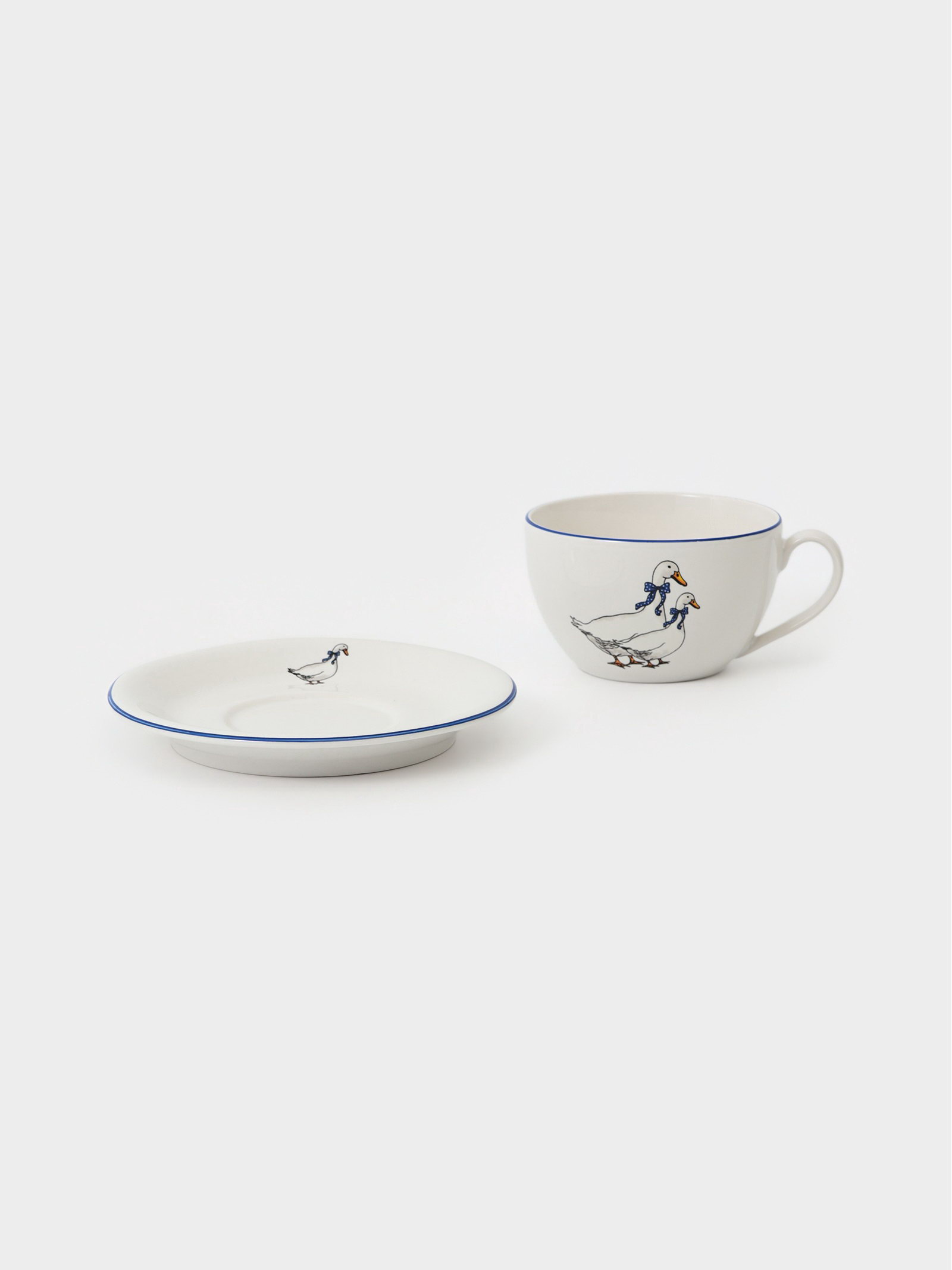 Чайная пара "Гуси", 300 мл, белая, 300 мл., Тихорецкий фарфор, Россия