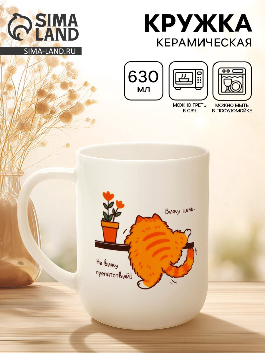 Кружка чайная керамическая "Рыжий кот", 630 мл, 9.4x12.3x3.5 см., Дорого внимание, Китай