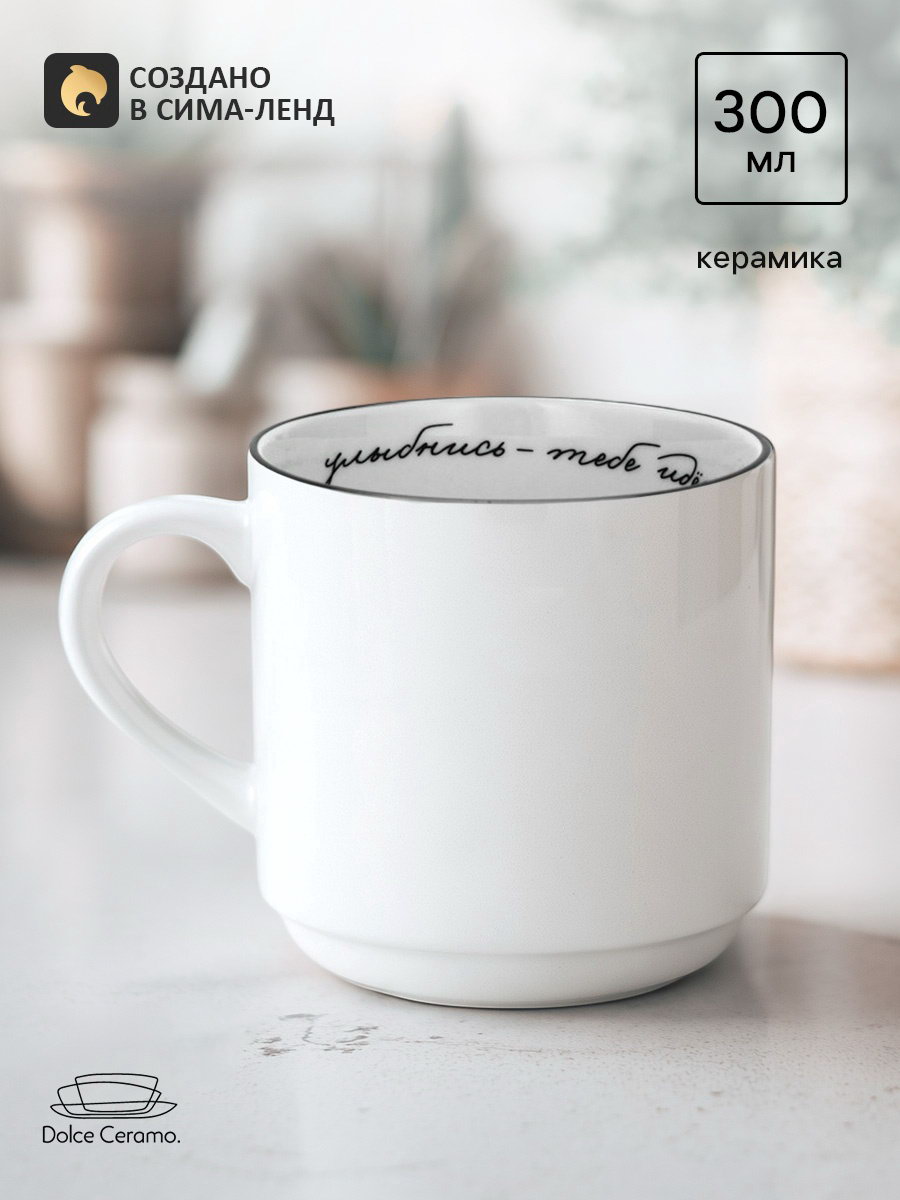 Кружка керамическая "Улыбнись", 300 мл, 8.5x8.5x11 см., Dolce Ceramo., Китай