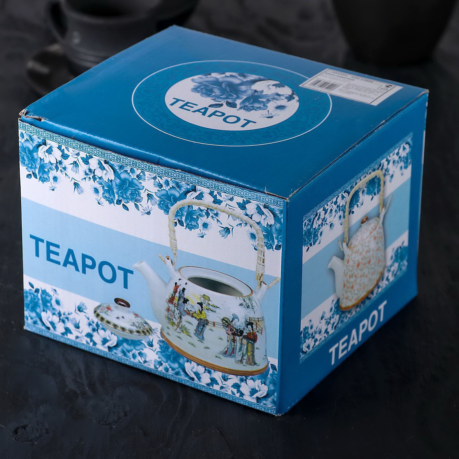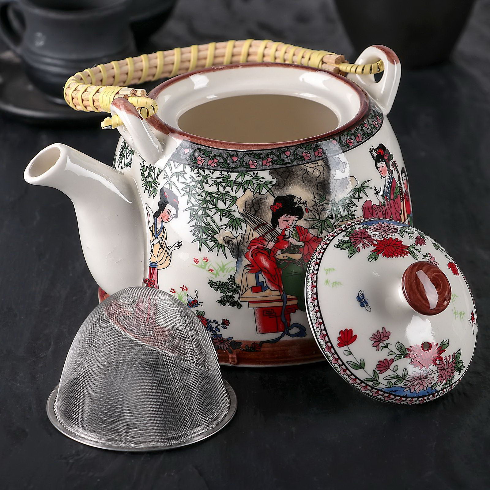 Чайник керамический заварочный с металлическим ситом "Беседа", 800 мл, 14.5x18x11 см., Китай
