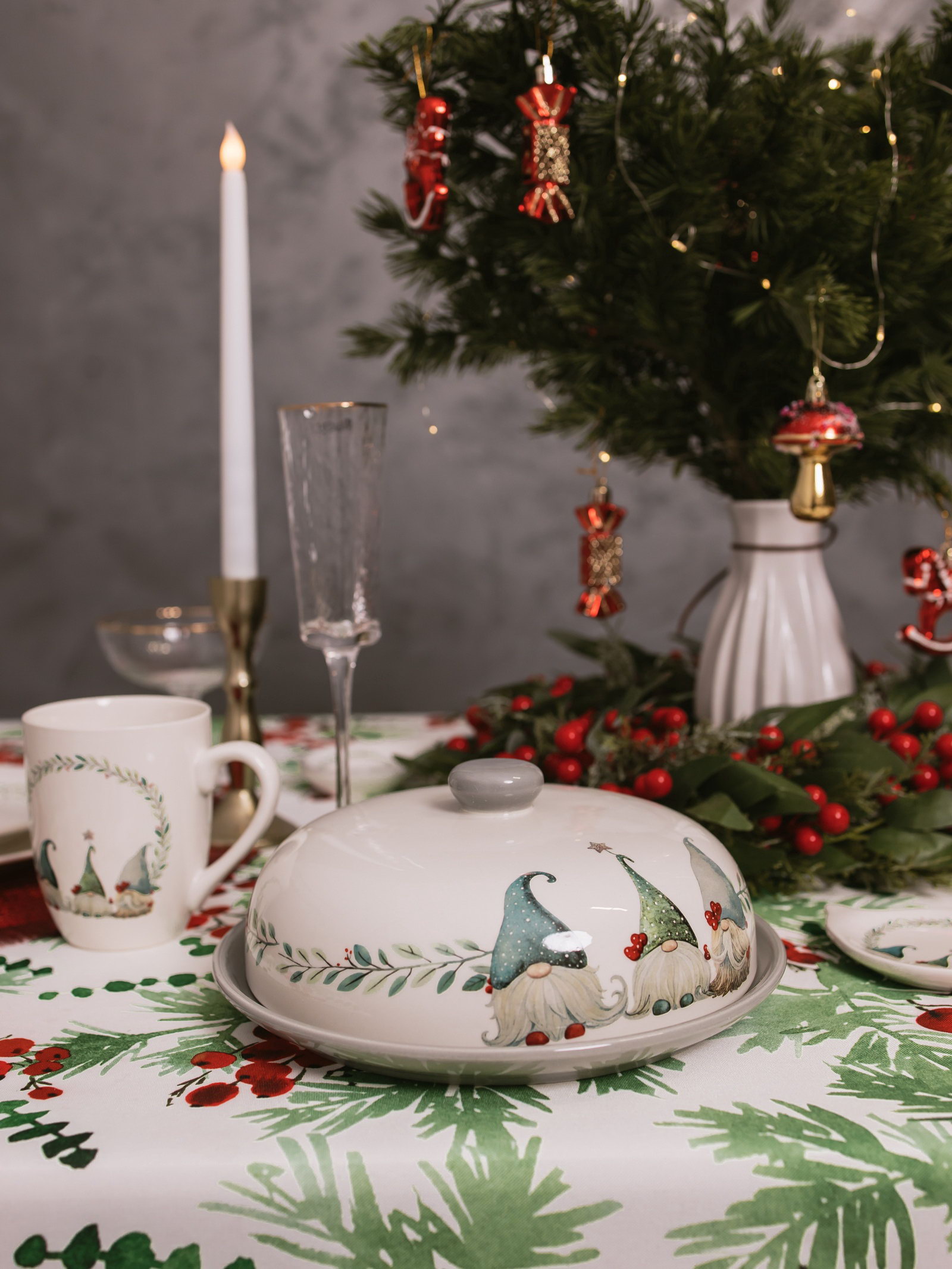 Блинница новогодняя "Домашние гномики", 23.5x9.7 см, доломит, белая, 23.5х23.5х9.7 см., Доляна, Китай