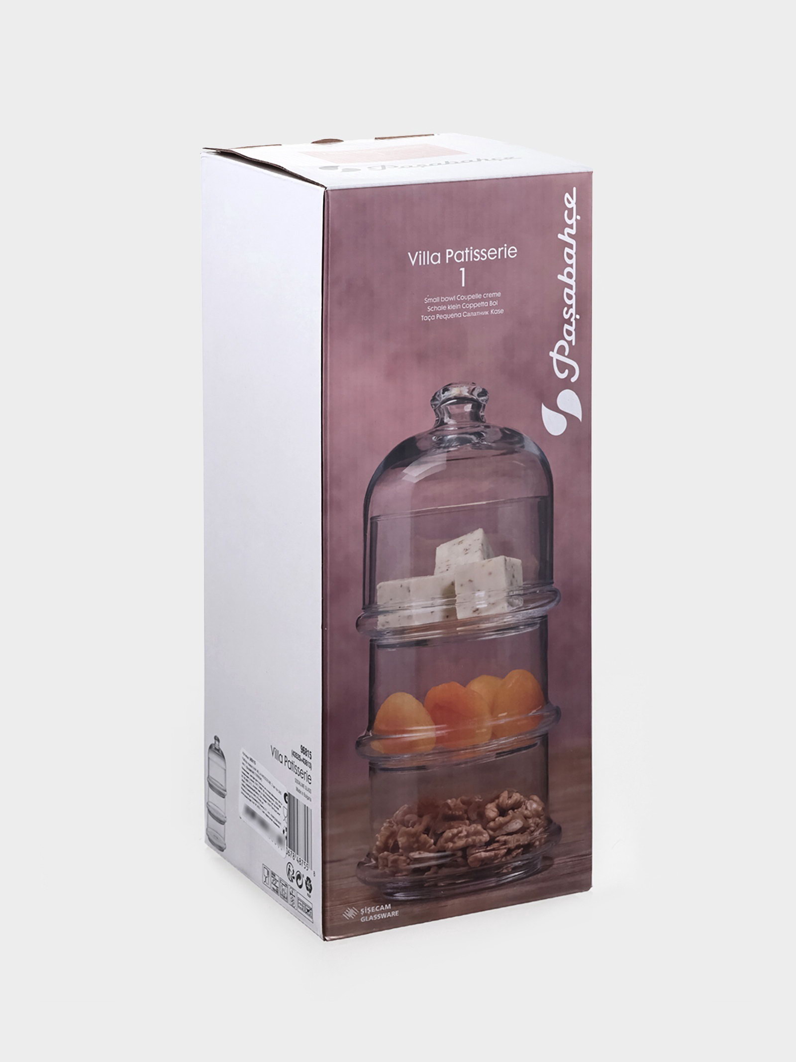 Ёмкости сервировочные Villa Patisserie, одна ёмкость 500 мл, с крышкой, набор 3 шт., стекло, прозрачные, 500 мл., Pasabahce, Турция
