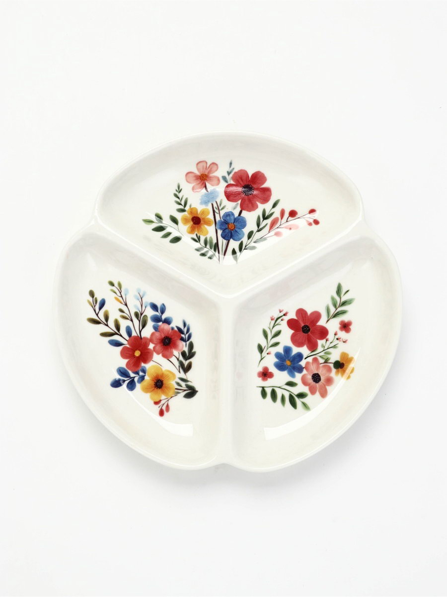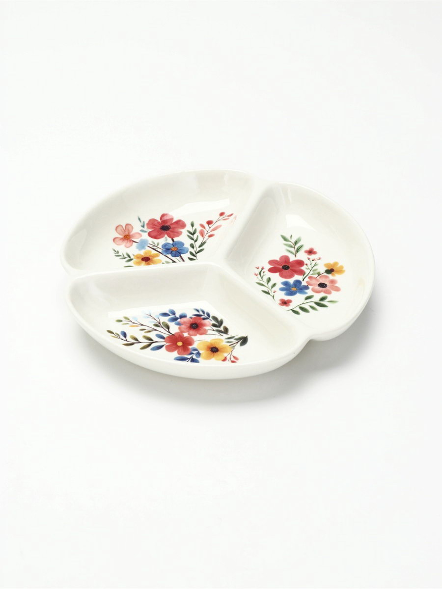 Менажница "Цветочная поляна", 19 см, 3 ячейки, керамическая, 19x19x2.5 см., Дорого внимание, Китай