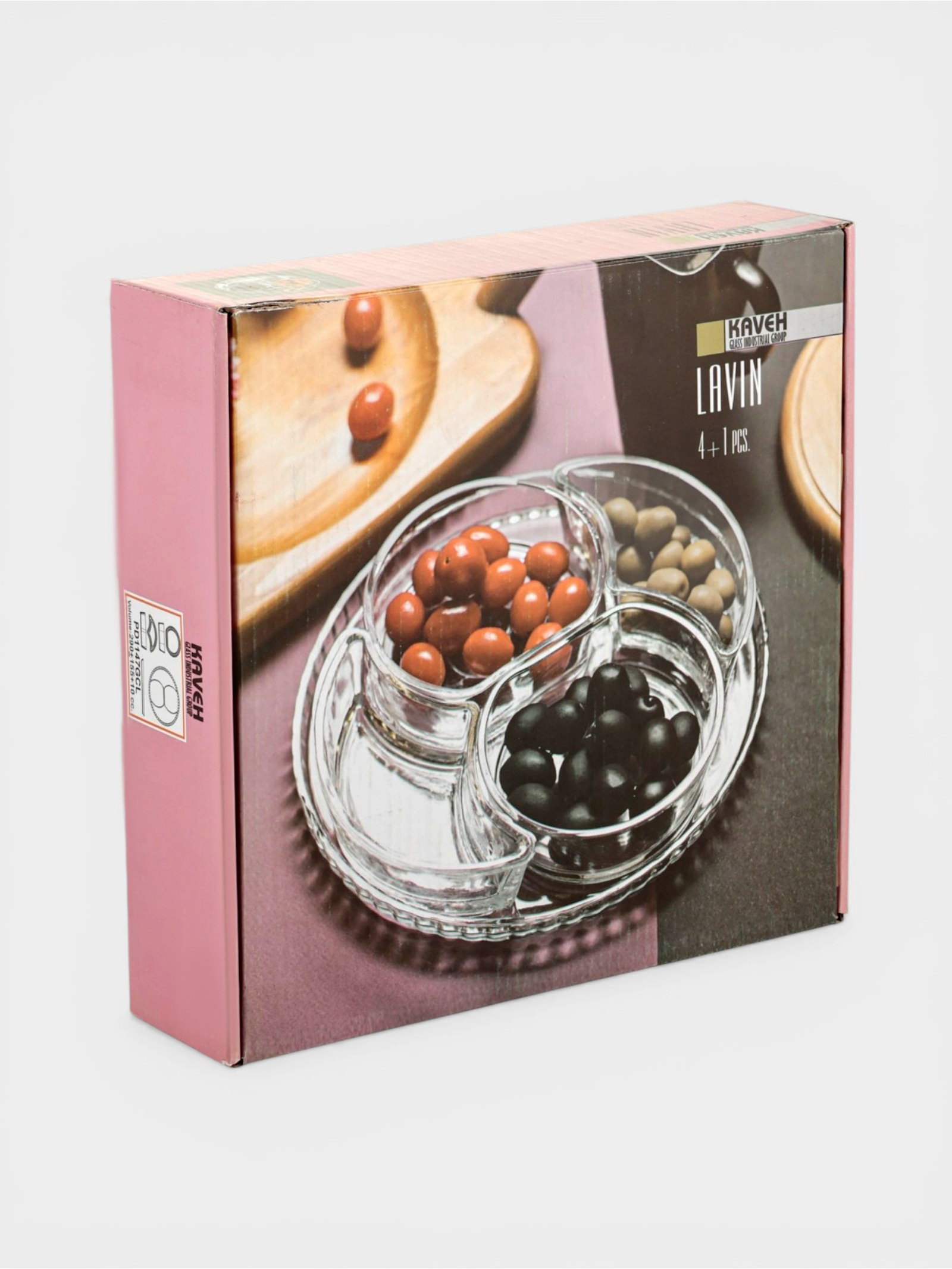 Менажница составная Lavin, 5 ячеек, стекло, прозрачная, Иран