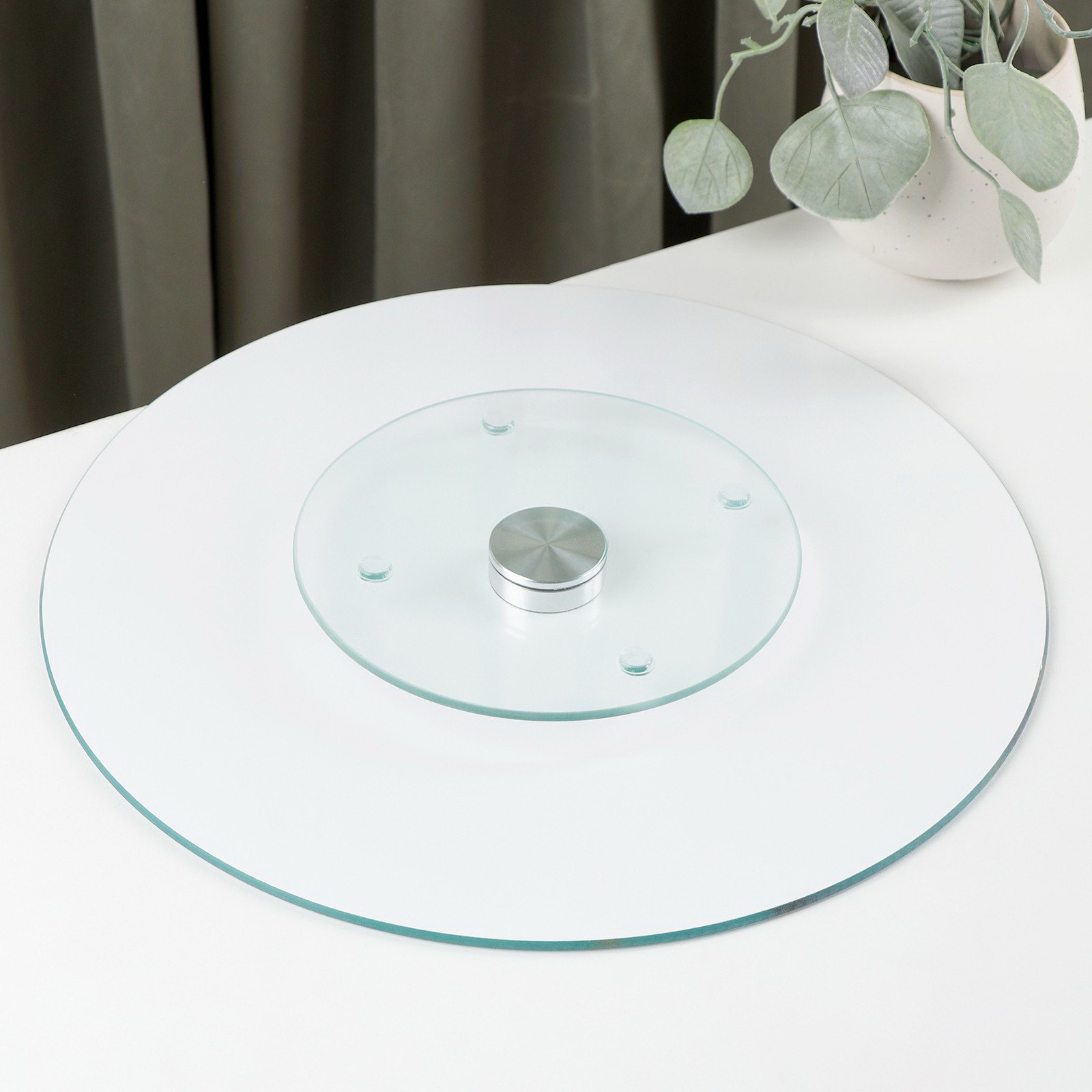 Подставка стеклянная для торта вращающаяся "Мраморный бриз", d=32 см, цвет голубой, 32х32х2.2 см., Magistro, Китай