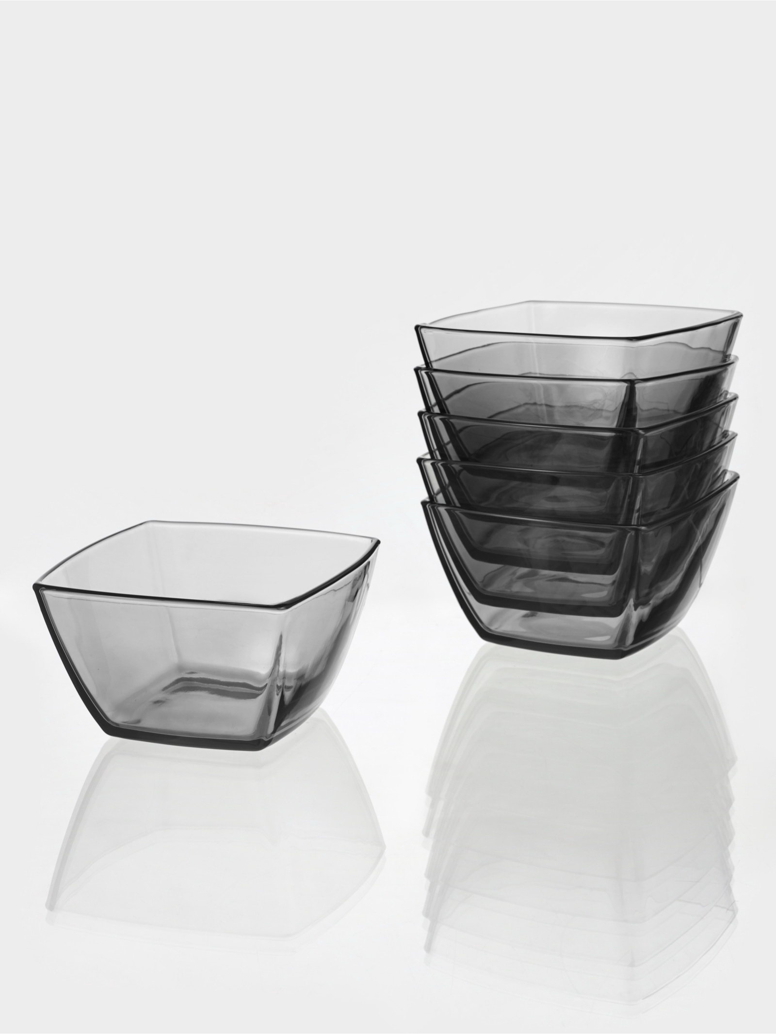 Набор салатников Tokyu. Gray, 500 мл, d=12.5 см, 6 шт., стекло, чёрный, 12.5 см., Pasabahce, Россия