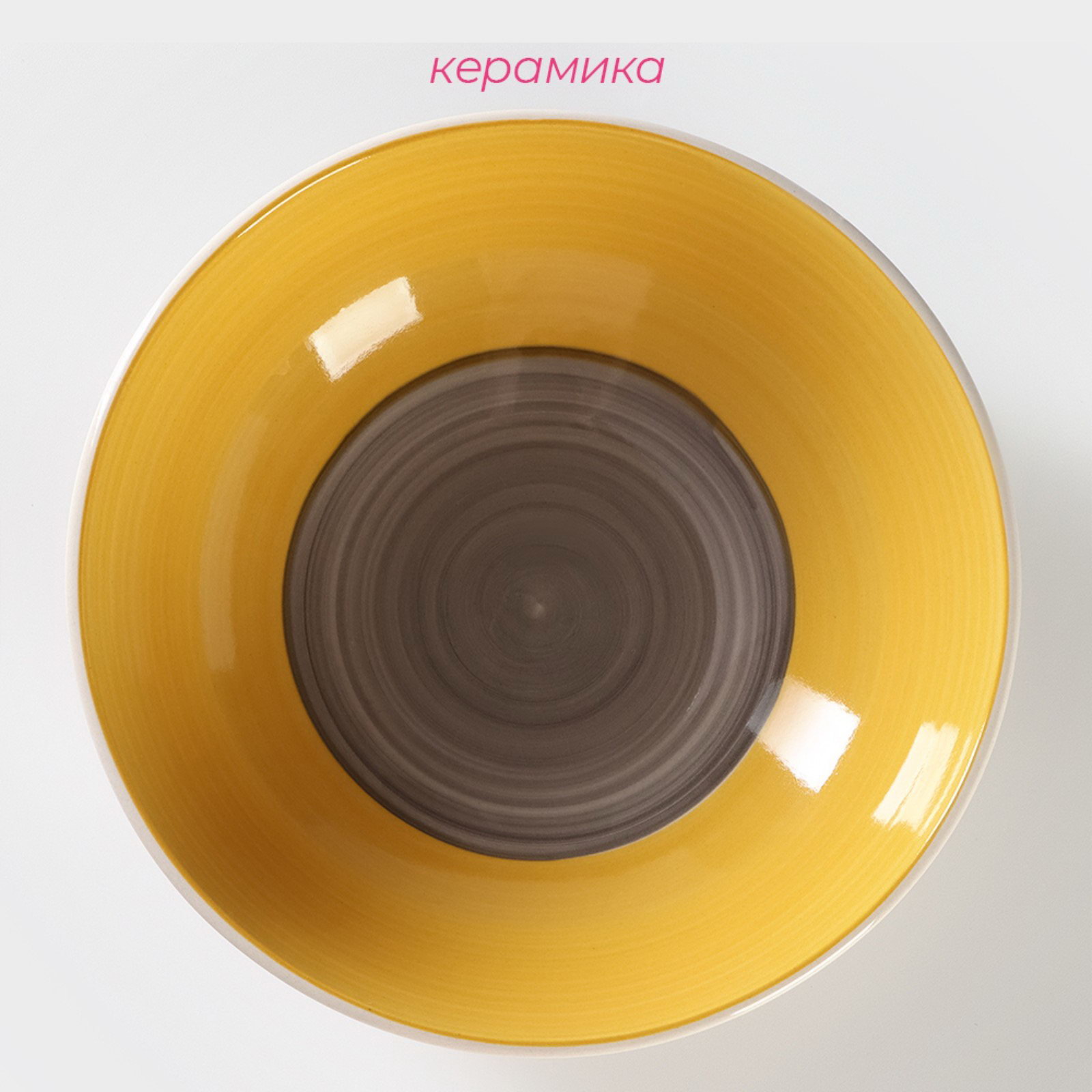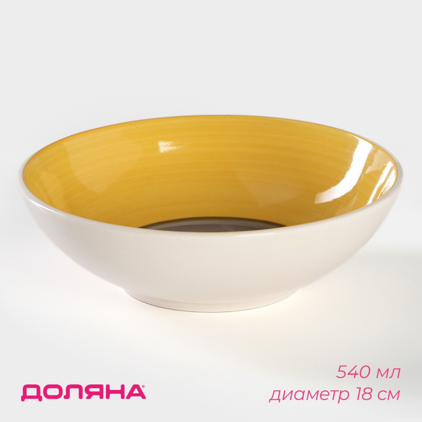 Тарелка керамическая глубокая "Бутон", 540 мл, d=18 см, цвет жёлтый, 18х18х5 см., Доляна, Китай