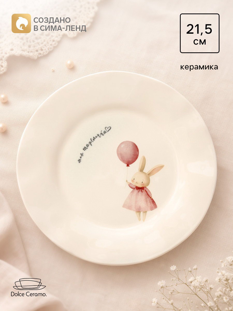 Тарелка керамическая "Зайчик", детская, 21.5 см, 21.5х21.5х2.5 см., Dolce Ceramo., Китай
