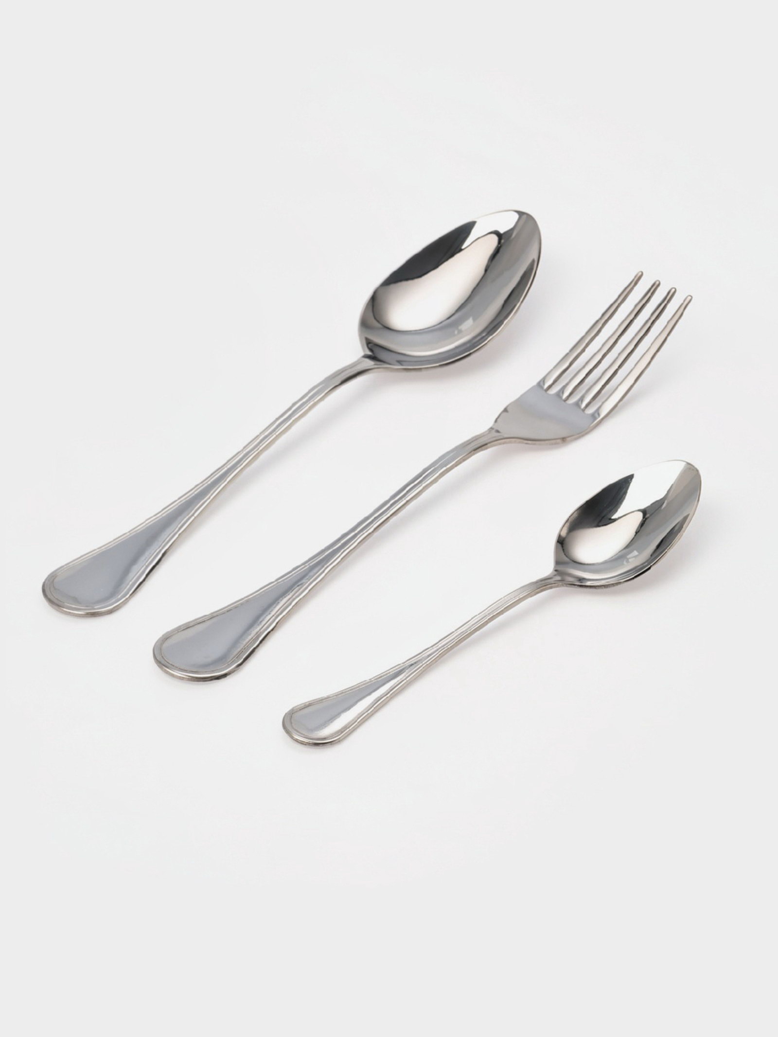 Состав набора: Вилка столовая, Ложка столовая, Ложка чайная Размер упаковки: 24 x 5 x 10 см. tnved: 8215991000 Температурное ограничение: Нет Внешний вид: Без особенностей В наборе, шт.: 18 Вид упаковки: Коробка картонная Можно мыть в посудомоечной машине: Нет Материал ручки: Нержавеющая сталь Матовая поверхность: Нет Цвет: Серебристый Рисунок: Нет Количество персон: 6 Цвет ручки: Серебристый Набор столовых приборов на шесть персон создаёт основу для сервировки повседневных и праздничных обедов. Шесть комплектов приборов столовые ложки, вилки и чайные ложки выполнены из нержавеющей стали толщиной 2 мм Такая классическая сервировка гарантирует устойчивость, а лаконичный дизайн без рисунков легко впишется в любой интерьер кухни или столовой. Преимущества