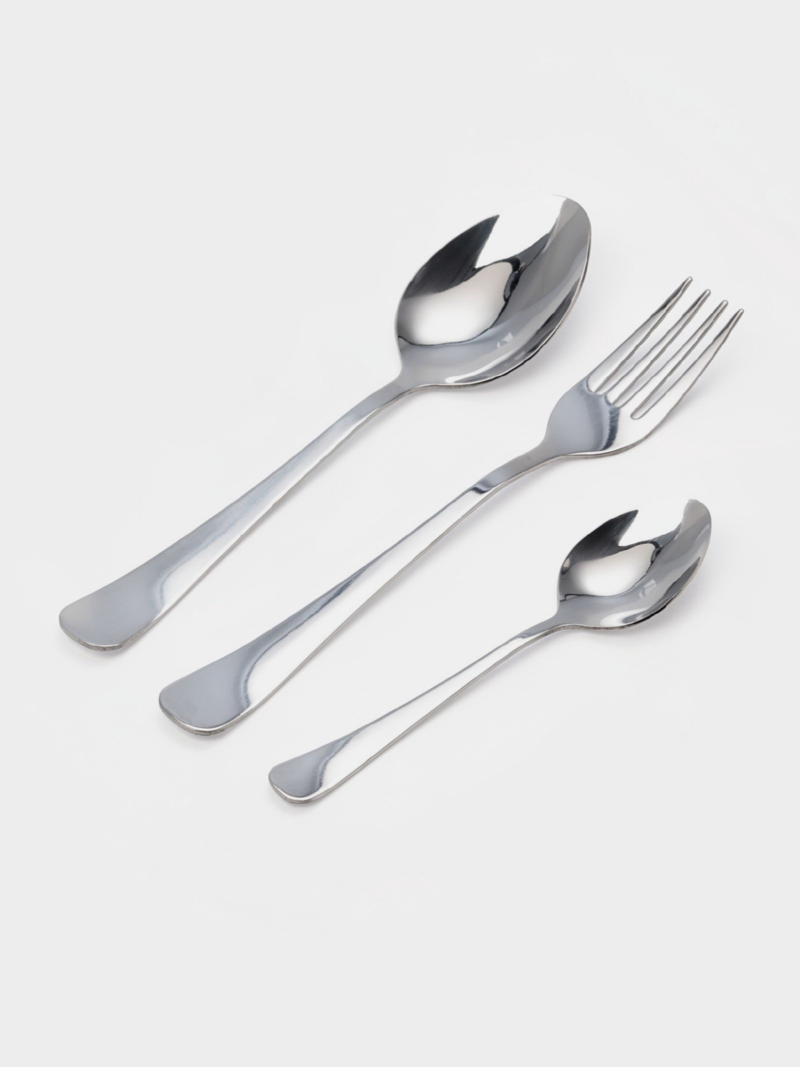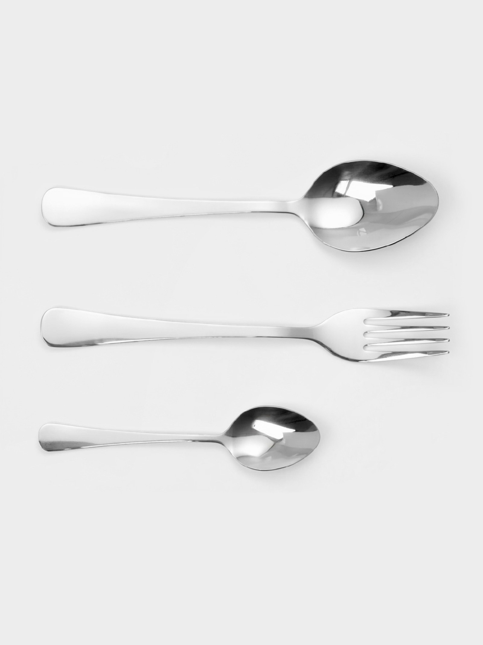 Состав набора: Вилка столовая, Ложка столовая, Ложка чайная Размер упаковки: 24 x 4.5 x 10 см. tnved: 8215991000 Температурное ограничение: Нет Внешний вид: Без особенностей В наборе, шт.: 18 Вид упаковки: Коробка картонная Материал ручки: Нержавеющая сталь Можно мыть в посудомоечной машине: Нет Матовая поверхность: Нет Цвет: Серебристый Количество персон: 6 Рисунок: Нет Цвет ручки: Серебристый Набор из 18 предметов для шести персон это основа сервировки стола. Комплект столовых приборов из нержавеющей стали включает всё необходимое для повседневных обедов и семейных ужинов: шесть столовых ложек, шесть вилок и шесть чайных ложек. Классический серебристый цвет и лаконичный дизайн делают его универсальным решением для любой кухни. Преимущества