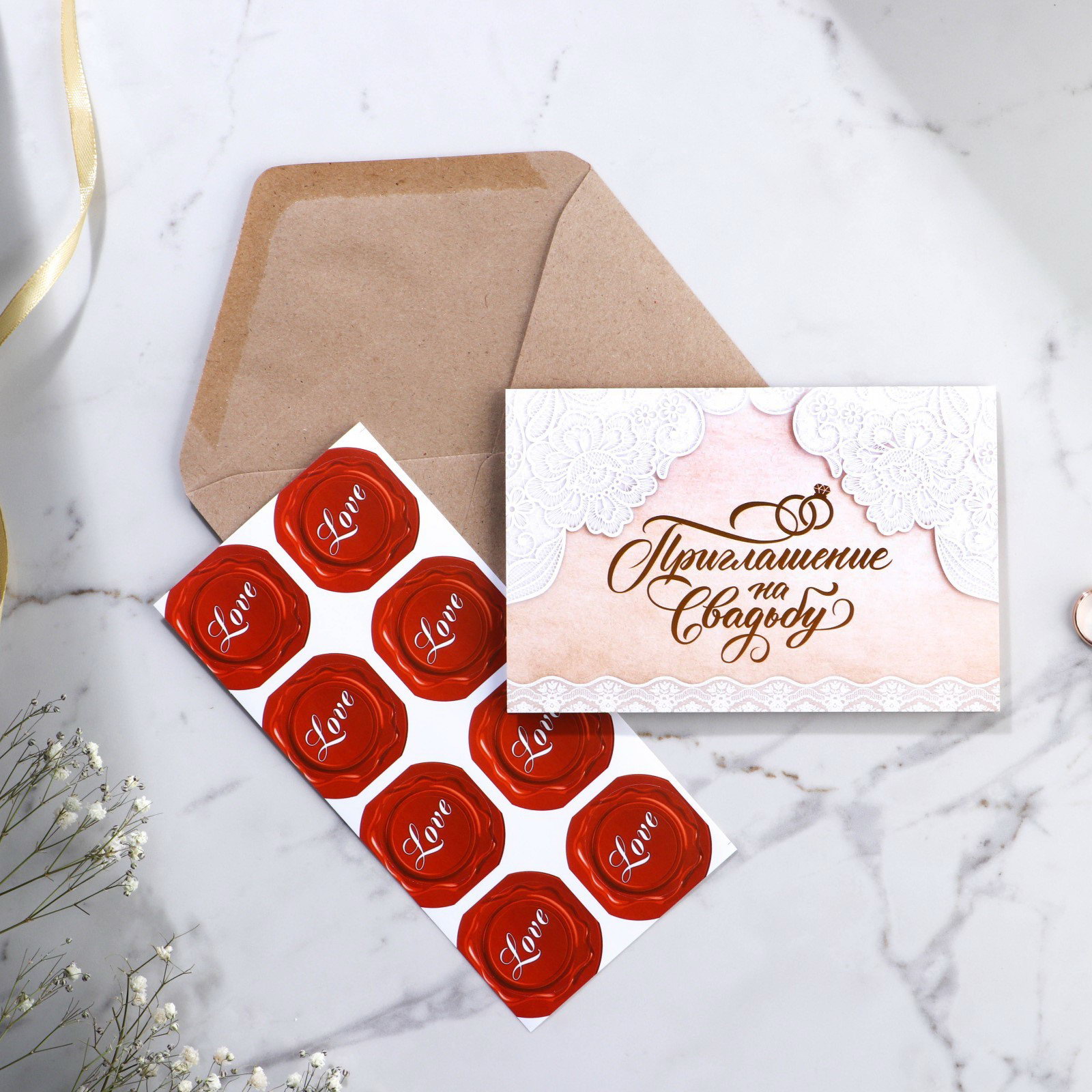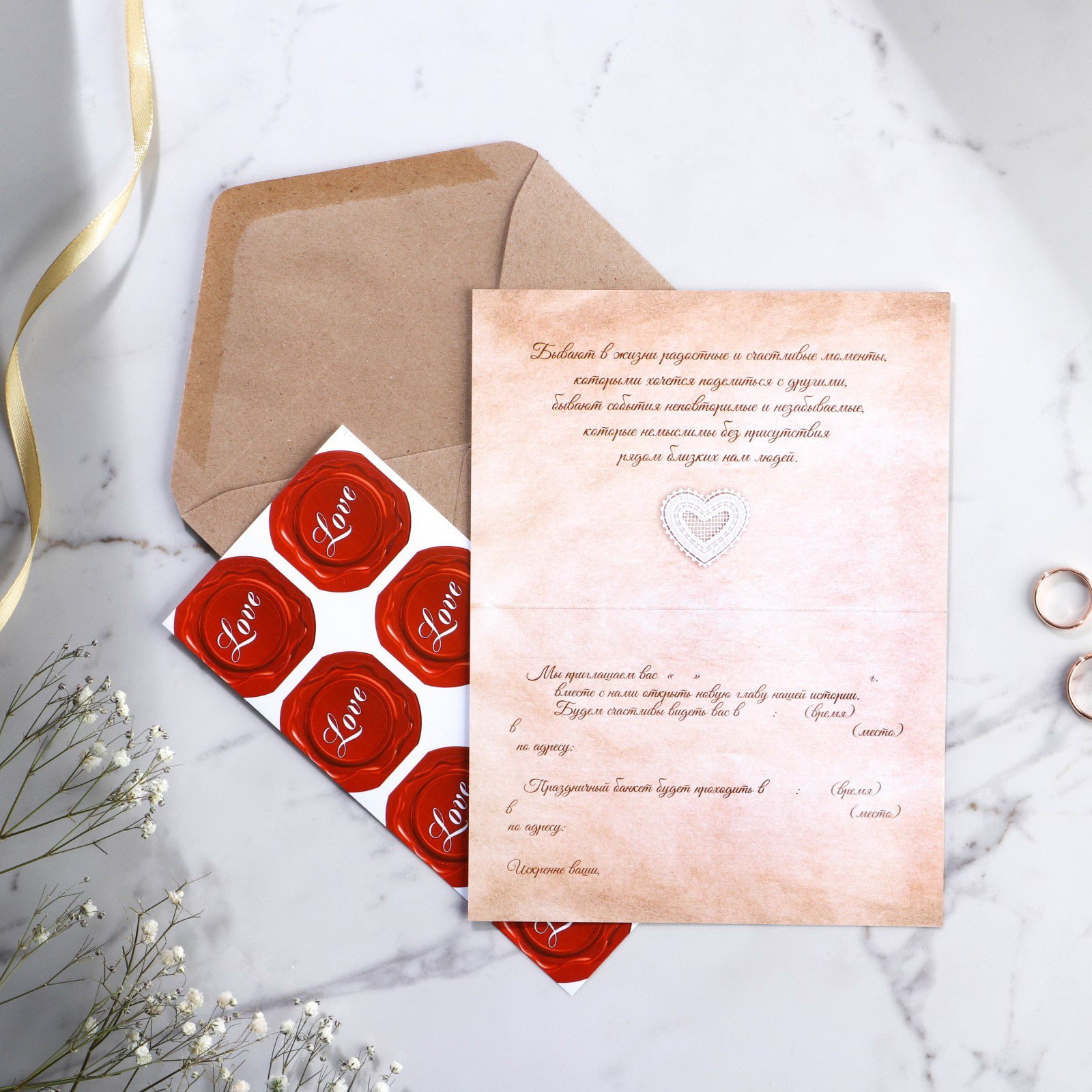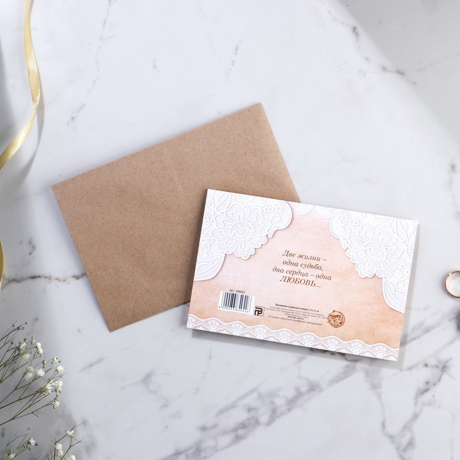 Приглашение на свадьбу в крафтовом конверте "Крафт", 15x10x0.1 см., Сима-ленд, Россия