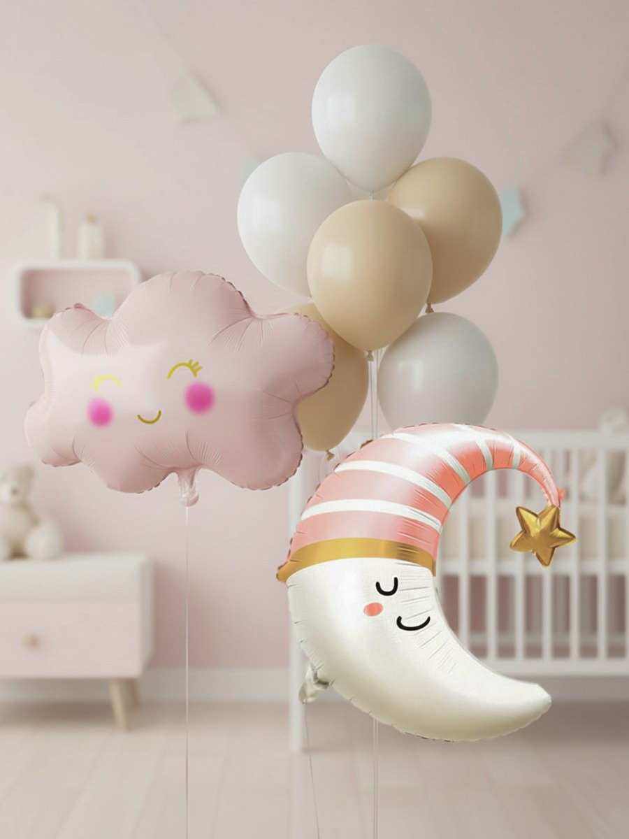 Набор воздушных шаров "Розовый месяц" латекс, фольга, набор 8 штук, Страна Карнавалия, Китай