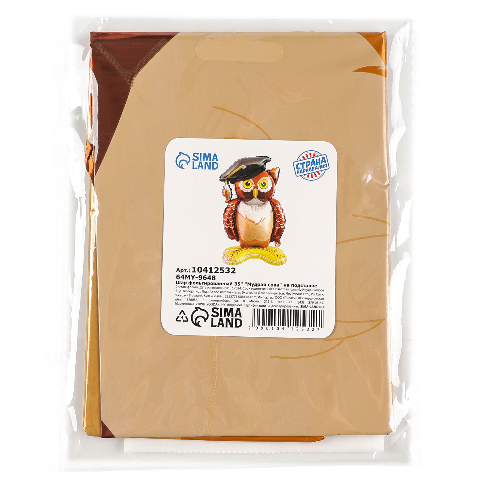 Тематика рисунка: Животные, Осень/школа Размер упаковки: 13 x 0.3 x 17 см. Набор: Нет Рисунок: Да В наборе, шт.: 1 Диаметр, дюйм: 35 Наличие клапана: Да Надувка шара: Воздухом Вид шара: Фигура Персонажи: Сова Цвет: Коричневый tnved: 9503010000 | ||