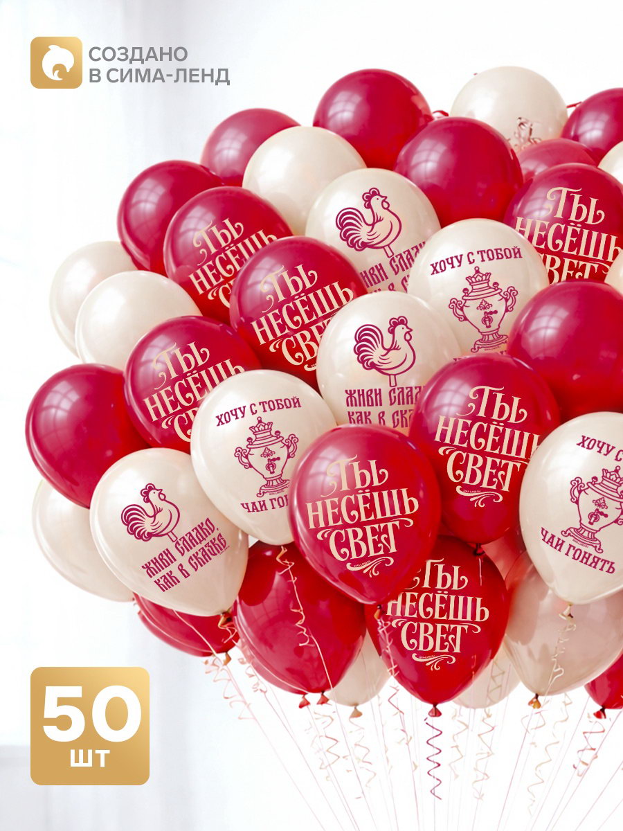 Воздушный шар латексный 12""Чаи гонять", набор 50 шт., Страна Карнавалия, Россия