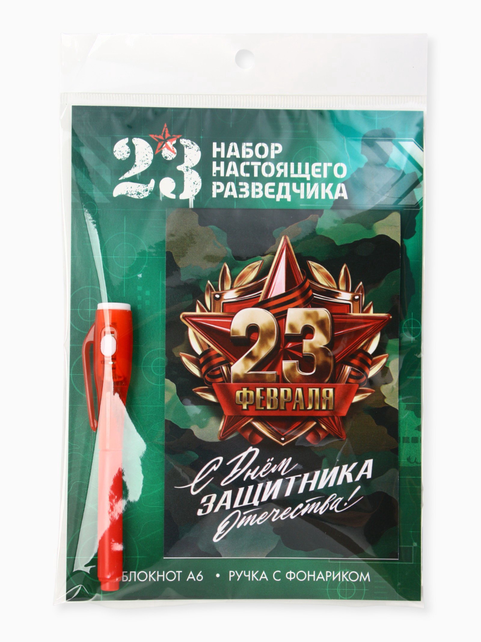 Подарочный набор "Разведчику", ручка с фонариком и невидимыми чернилами, блокнот А6, 16 л, ArtFox, Россия
