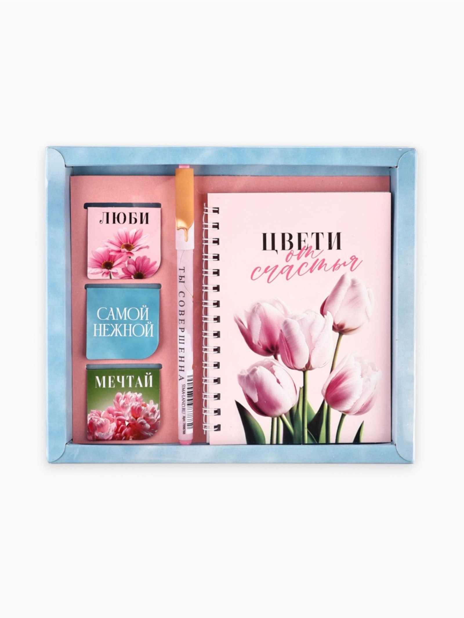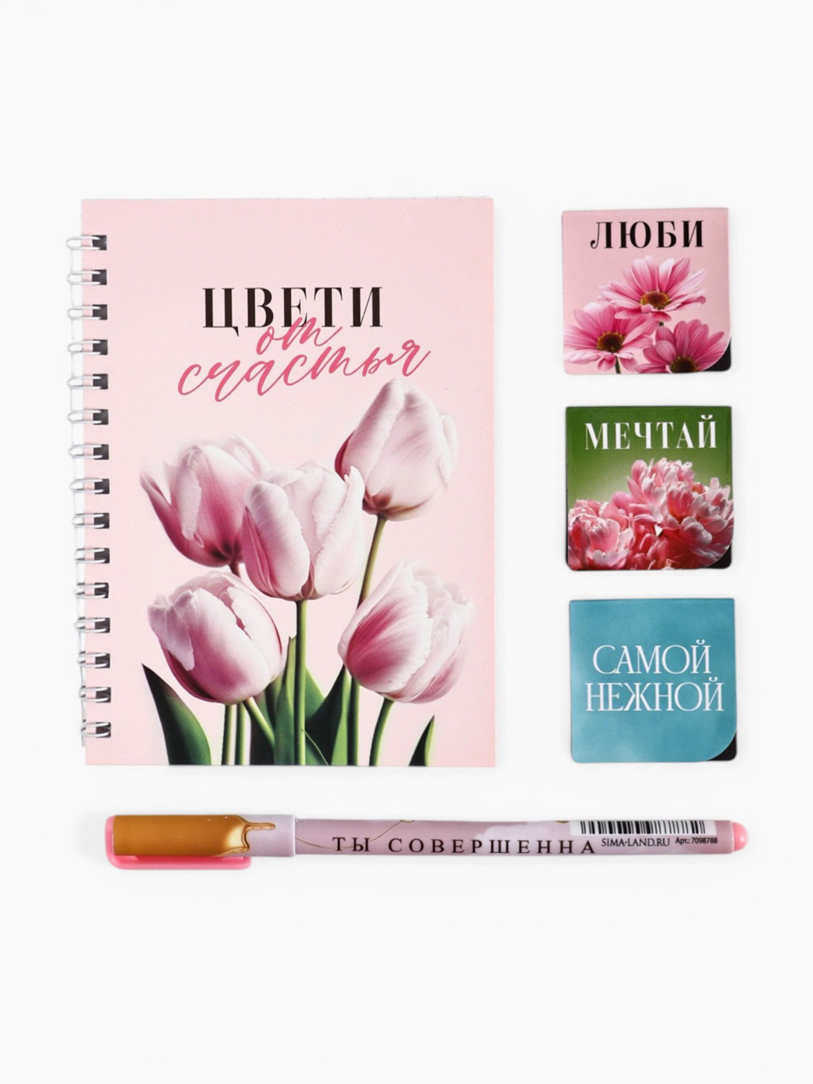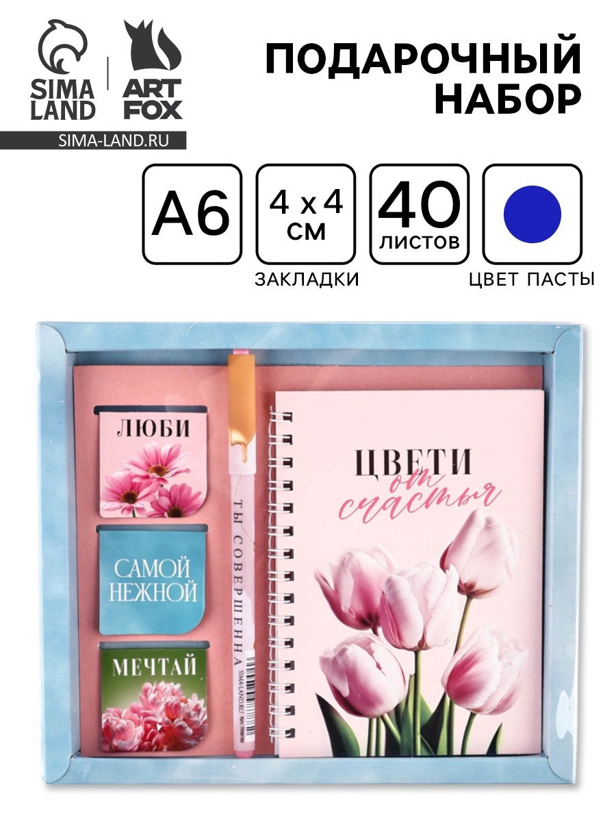 Подарочный набор: блокнот А6, 40 л, магнитные закладки, ручка "Цвети от счастья", ArtFox, Россия