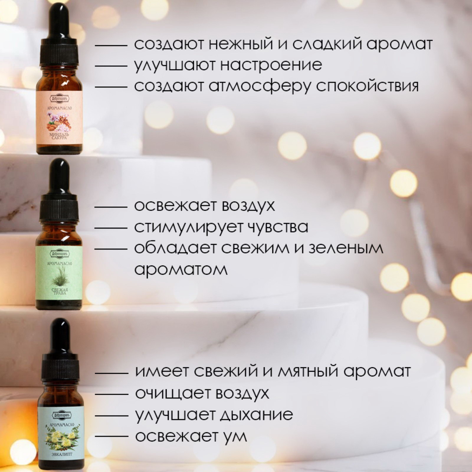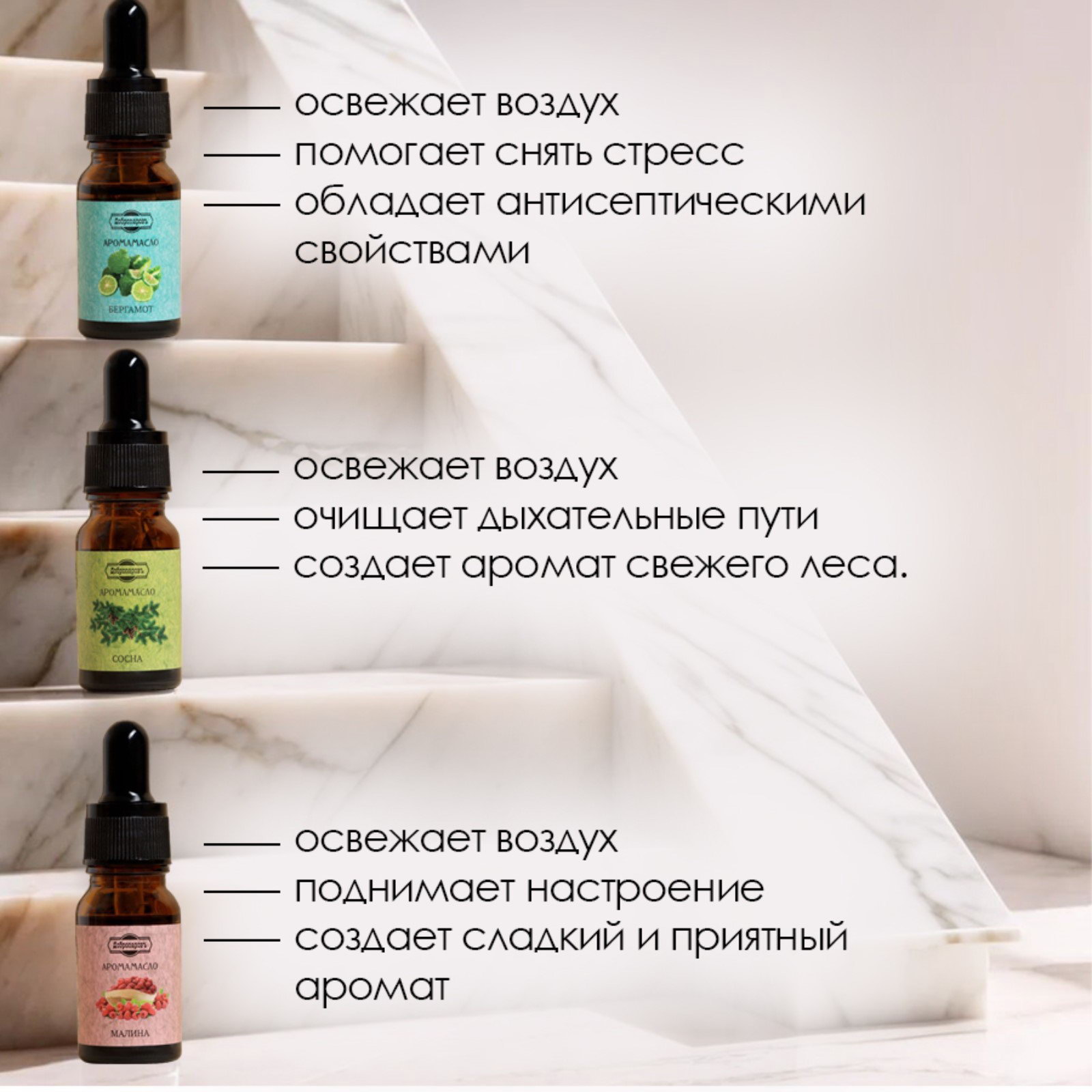 Аромат: Бергамот, Ваниль, Грейпфрут, Дыня, Иланг-иланг, Корица, Лаванда, Малина, Мандарин, Миндаль, Мята, Пачули, Розмарин, Сакура, Сандал, Свежескошенная трава, Смородина, Солод, Сосна, Фиалка, Хмель, Чёрная смородина, Эвкалипт Размер упаковки: 16 x 11 x 16 см. Температурное ограничение: Нет Набор: Да Набор: Да tnved: 3307490000 | ||