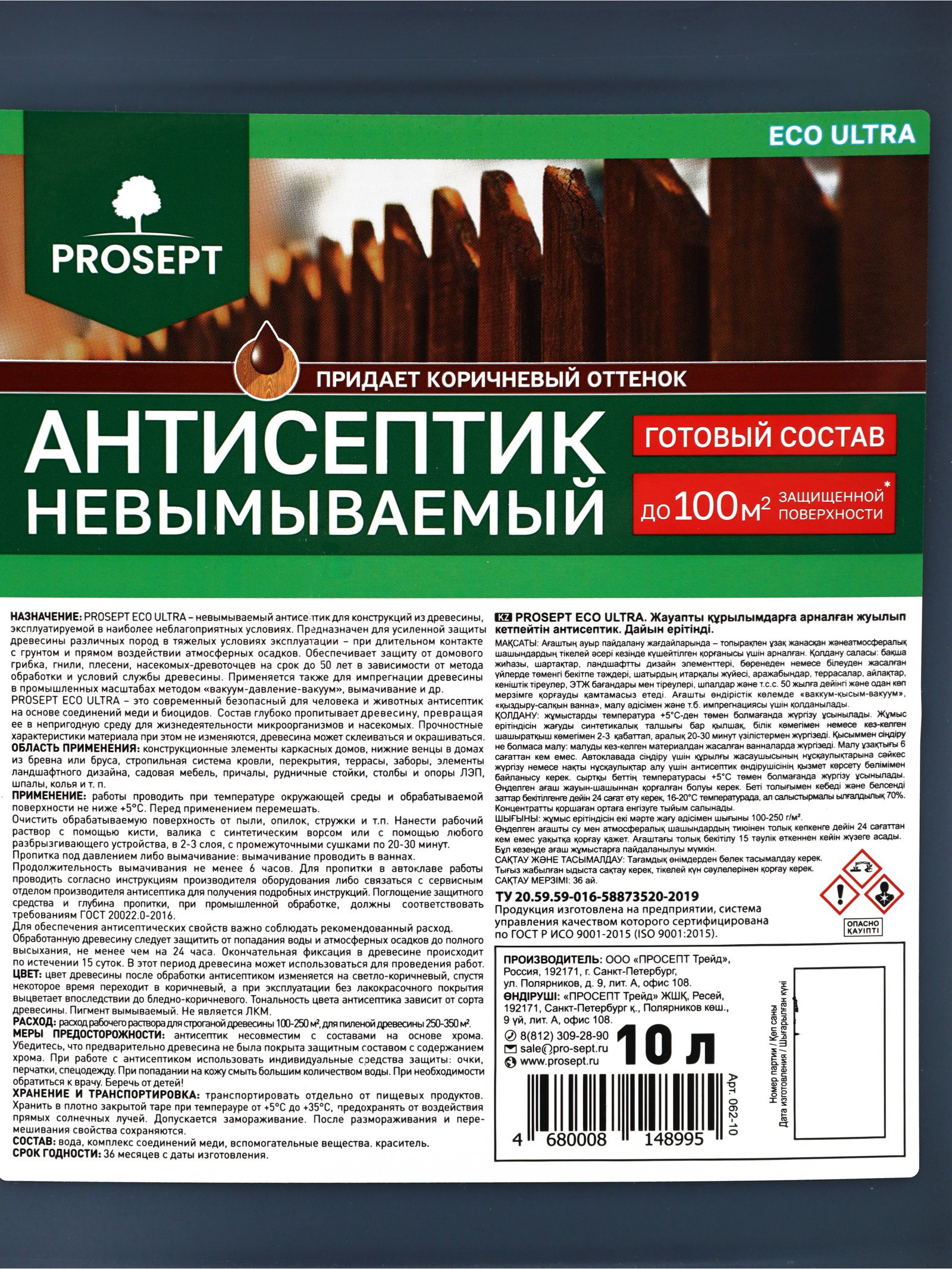 Антисептик невымываемый ECO ULTRA коричневый готовый состав 10 л, PROSEPT, Россия