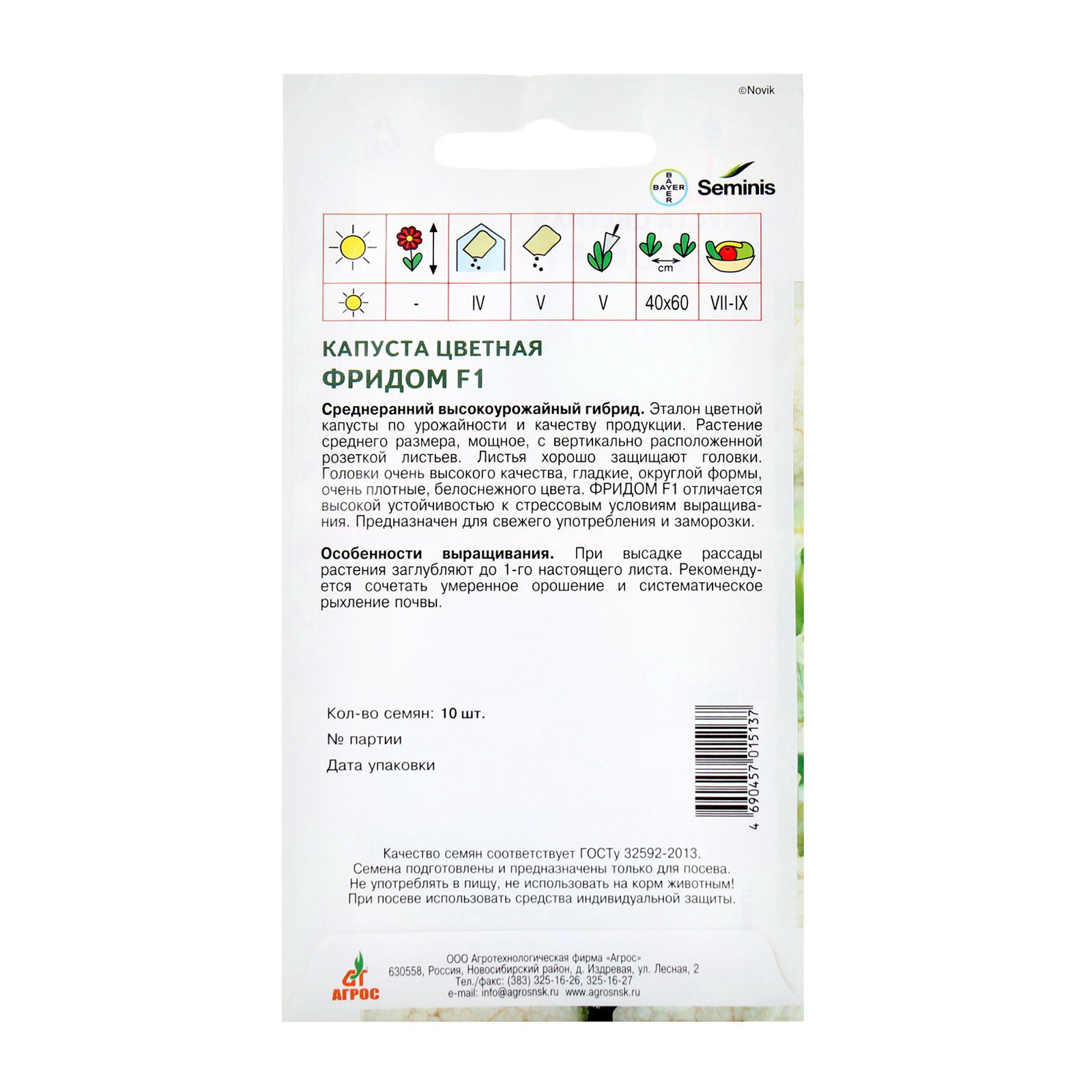 Семена Капуста цветная, "Фридом", F1, 10 шт., Seminis, "Агрос", Агросс, Чили