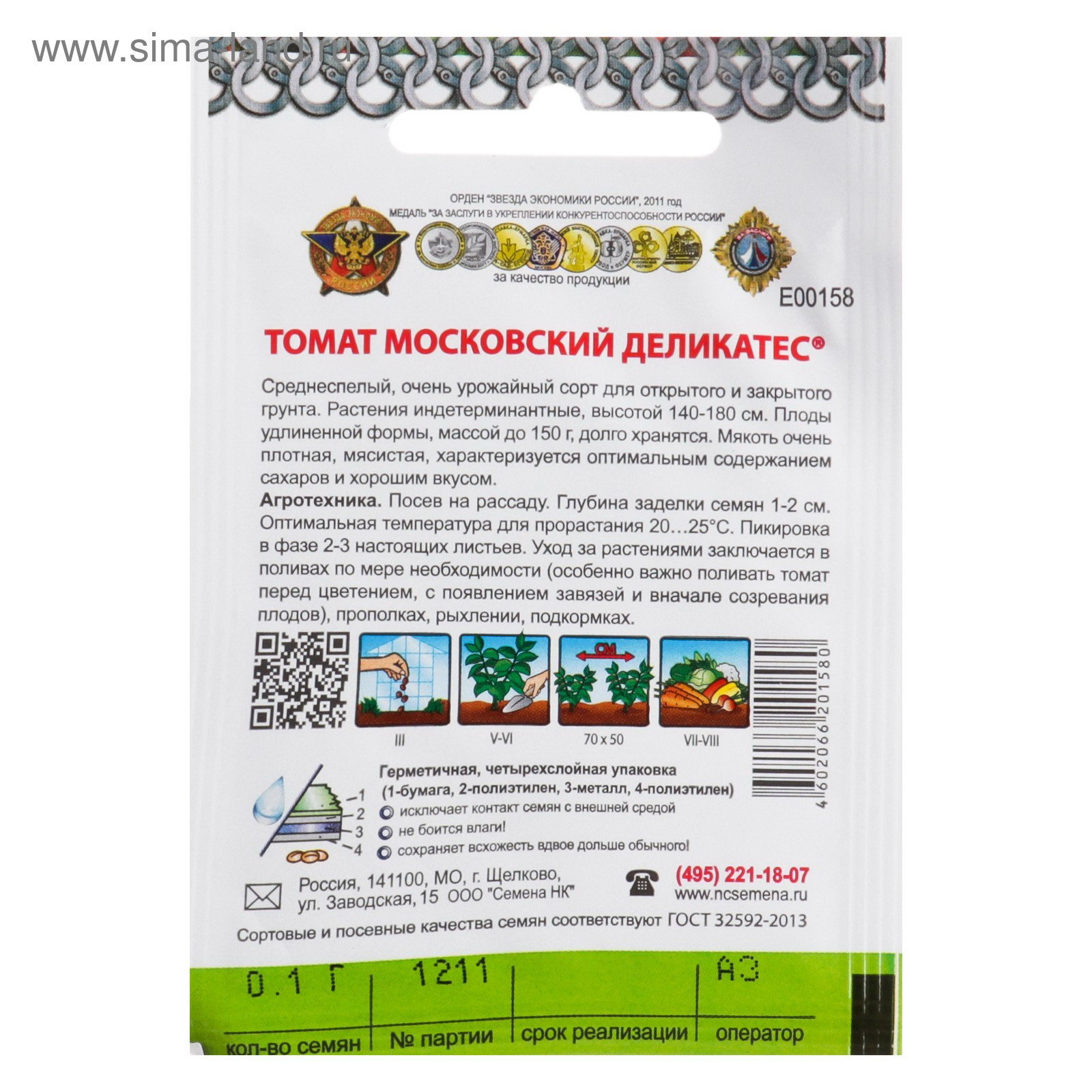 Семена Томат "Московский деликатес" серия Кольчуга, среднеспелый, 0.1 г, Русский огород, Россия