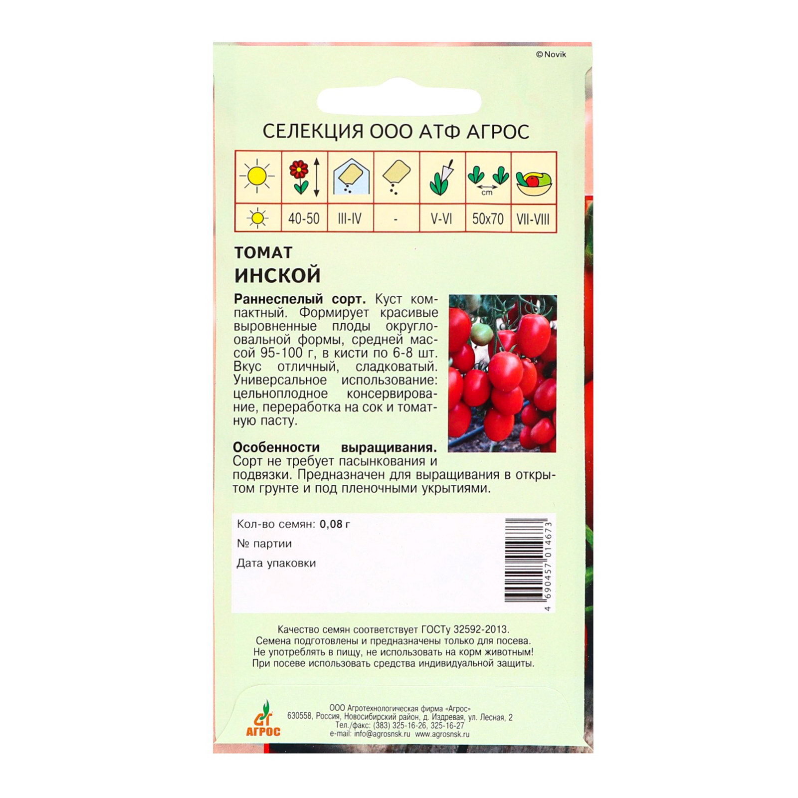 Семена Томат "Инской", 0.08 г, "Агрос", Агросс, Россия