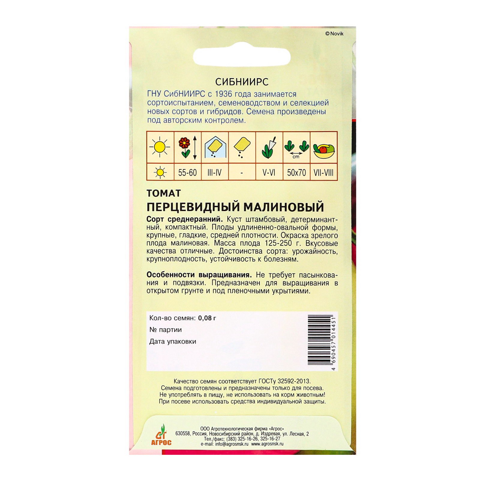 Семена Томат "Перцевидный малиновый", 0.08 г, "Агрос", Агросс, Россия