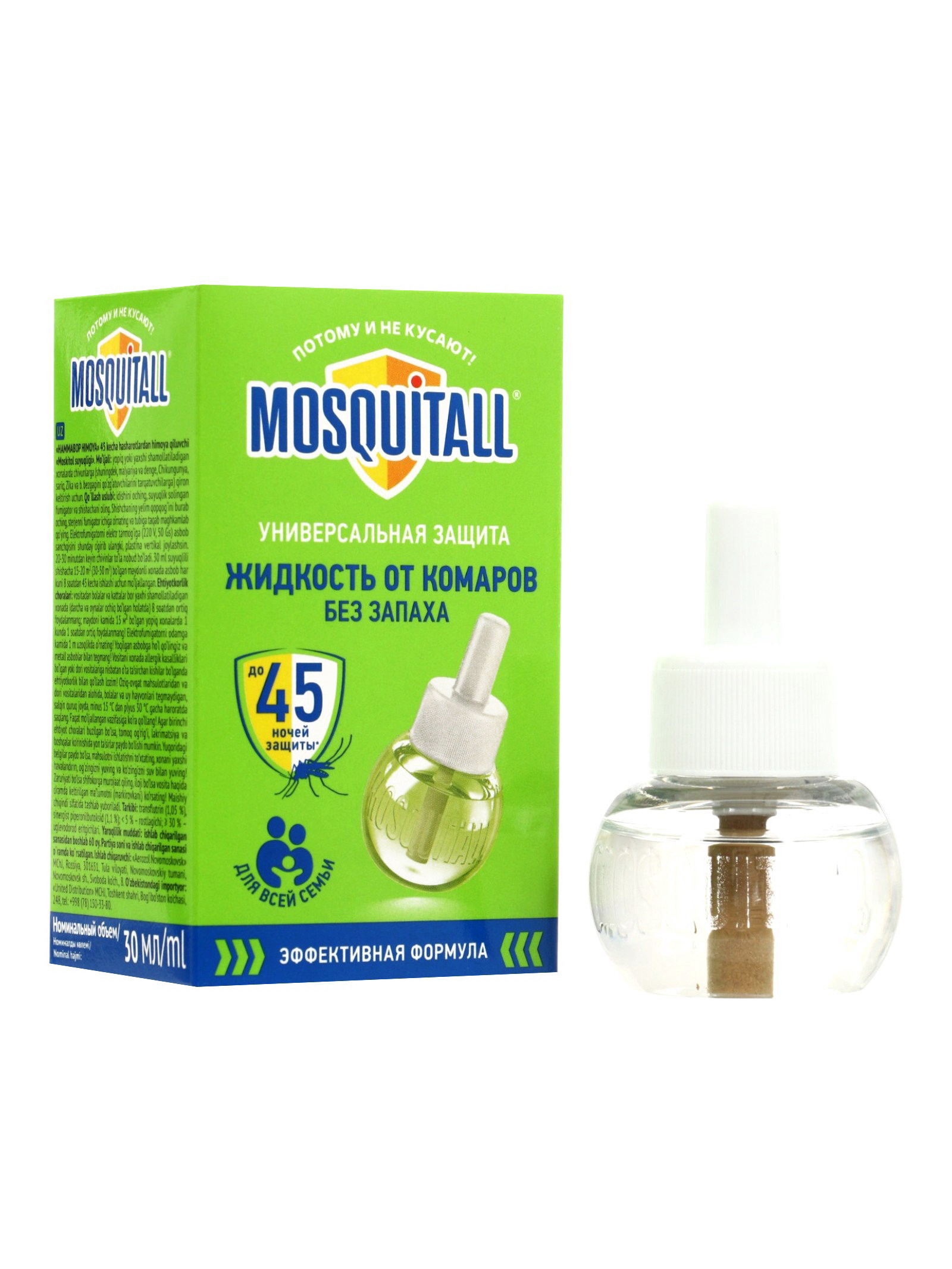 Для спокойного сна и комфортного отдыха: комплект MOSQUITALL - это практичное и экономичное решение для защиты от комаров. Всё необходимое уже в наборе, а длительного действия жидкости хватит на весь сезон. Подключите фумигатор и забудьте о назойливых насекомых! | ||