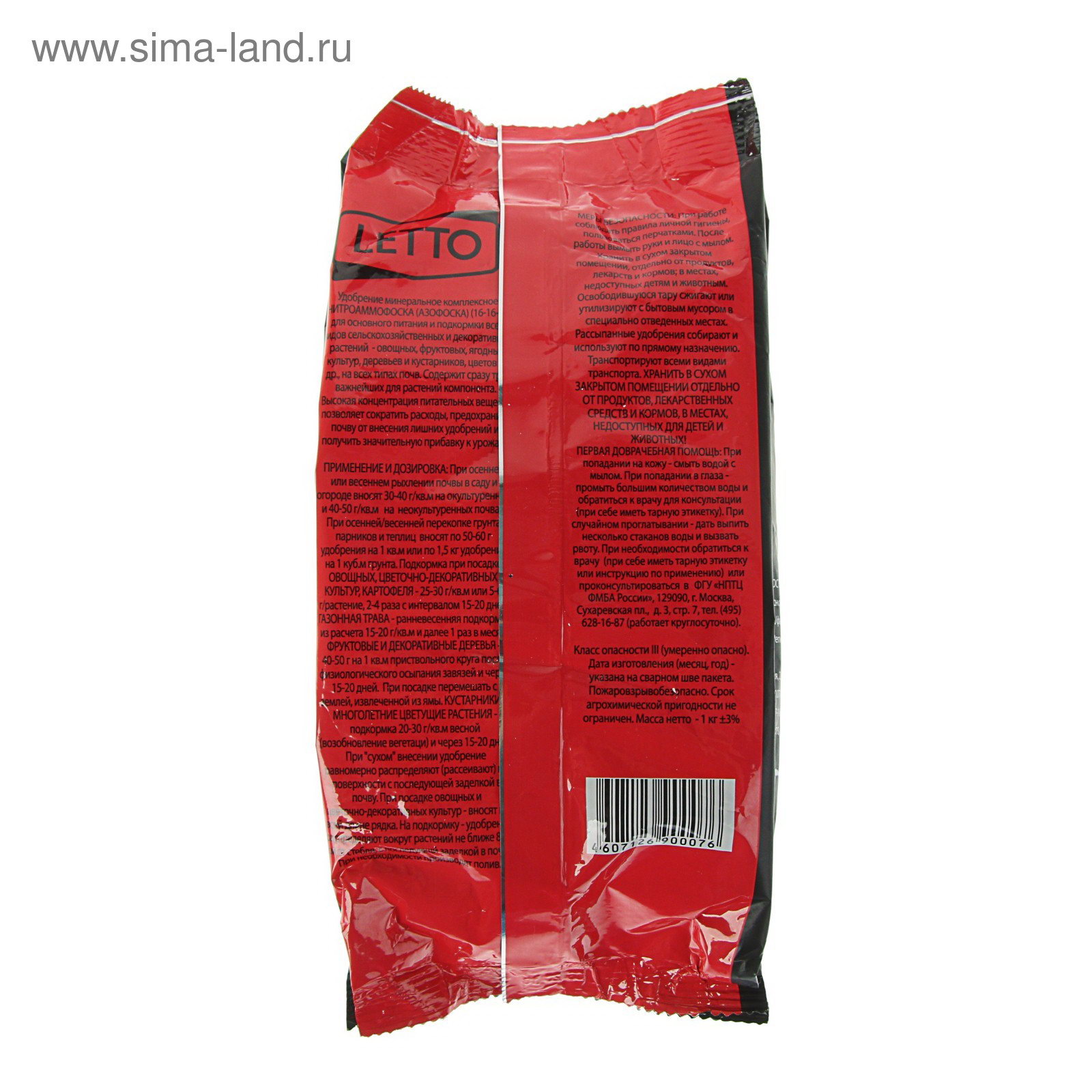 Эффект: Активация роста, Увеличение урожая, Увеличение цветения Периоды применения: Весна, Лето, Осень Размер упаковки: 16 x 5 x 21 см. Происхождение: Минеральные (неорганические) tnved: 3105209000 tnved: 3105209000 Сатурн: Сатурн Комплексные удобрения: Да Область применения: Универсальные Вес/Объём: 1 кг Класс опасности: 3 класс (умеренно опасные) Препаративная форма: Гранулы Удобрение "Летто нитроаммофоска" позволяет за один приём производить подкормку сразу тремя питательными элементами. Обеспечивает значительную прибавку урожая и предохраняет почву от внесения лишних удобрений, которые могут нарушить процесс вегетации растений. Состав:
