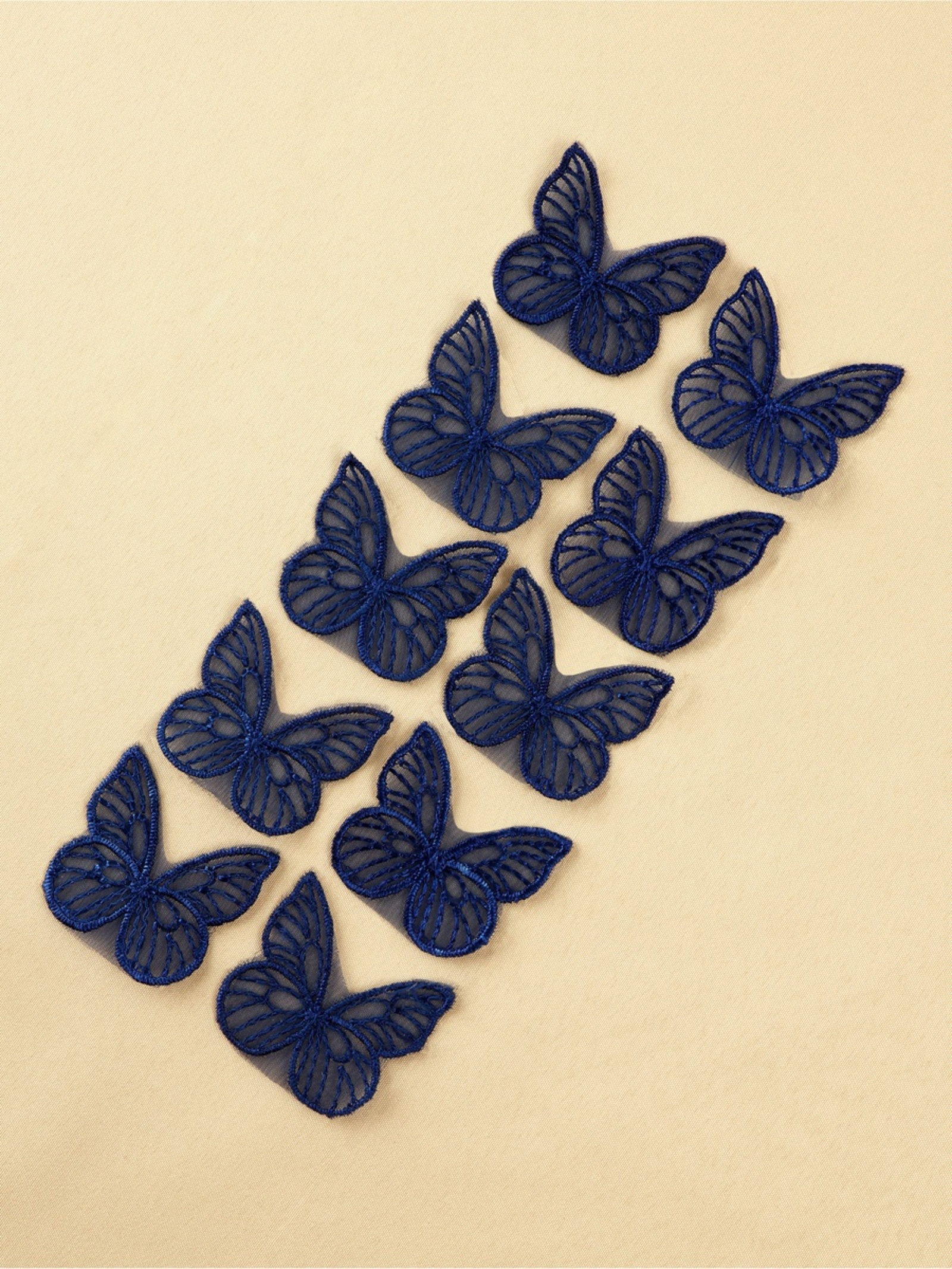 Аппликация для одежды "Бабочка", текстильная, 3.5x4 см, 10 шт., тёмно-синяя, 7x14x1 см., Арт Узор, Китай
