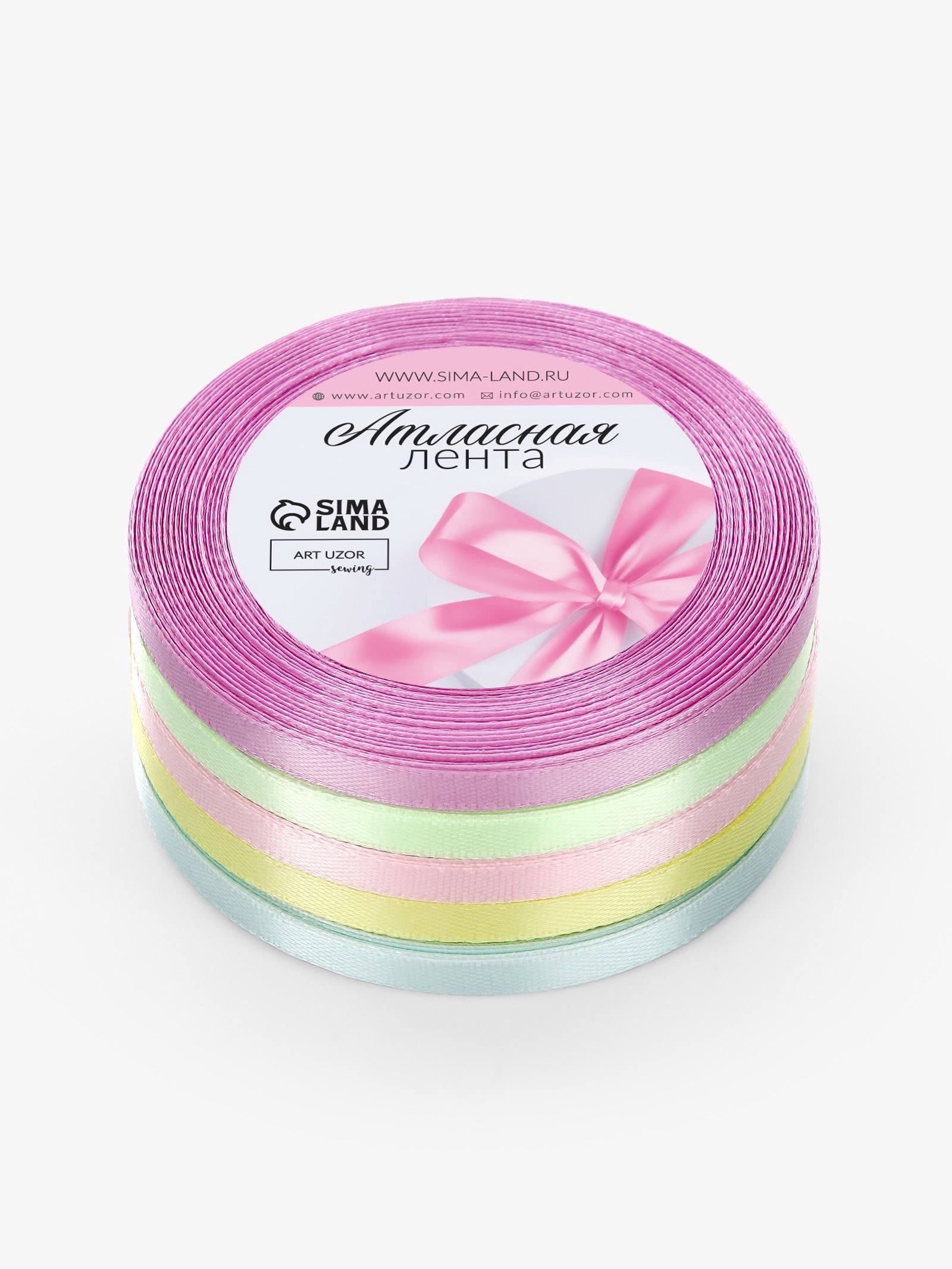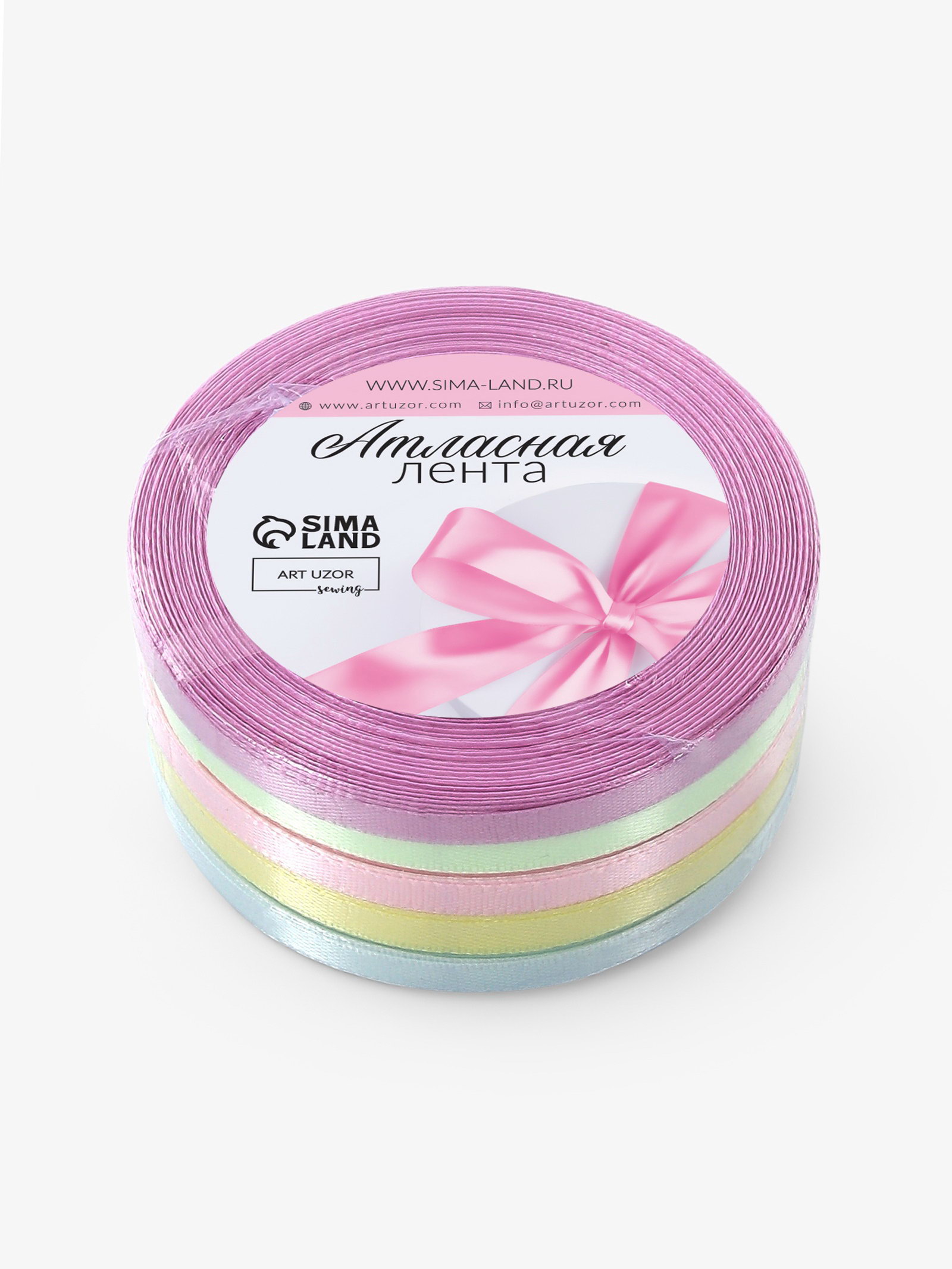Атласная лента, набор 5 шт. "Пастельный", 6 мм, 23+-1 м, 9x9x4 см., Арт Узор, Китай