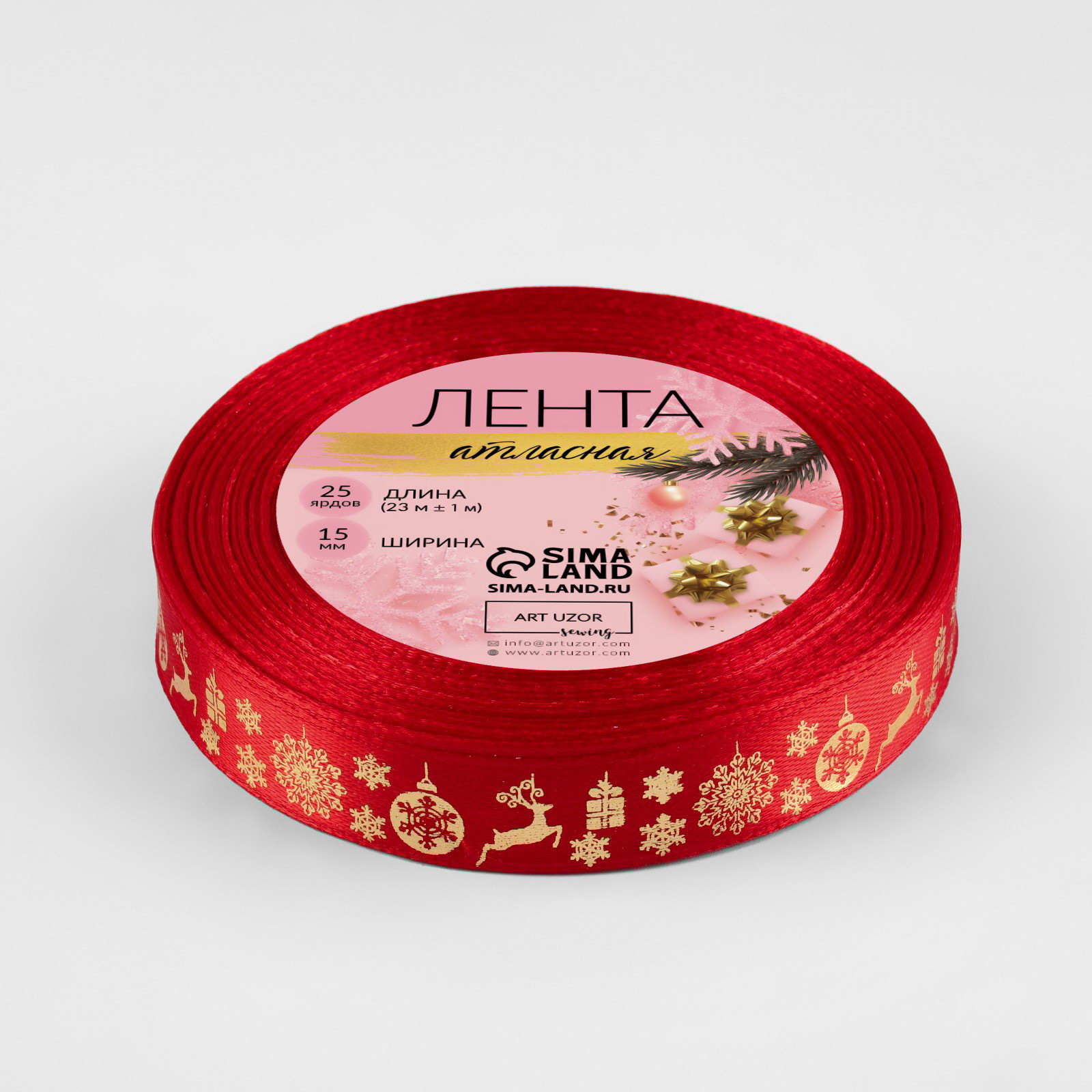 Лента атласная с тиснением "Олени", 15 мм, 23+-1 м, красный, 9x9x1.5 см., Дарите Счастье, Китай