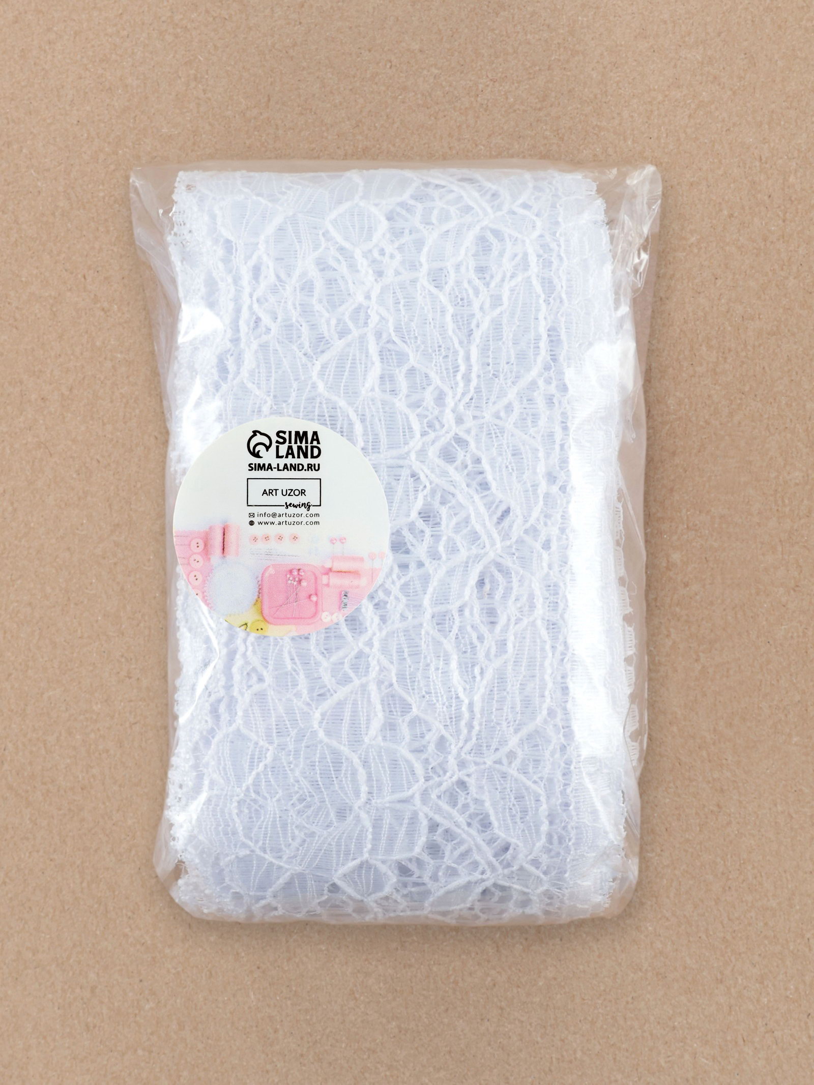 Кружево капроновое, 60 мм, 10+-1 м, белое, 10x17x2 см., Арт Узор, Китай