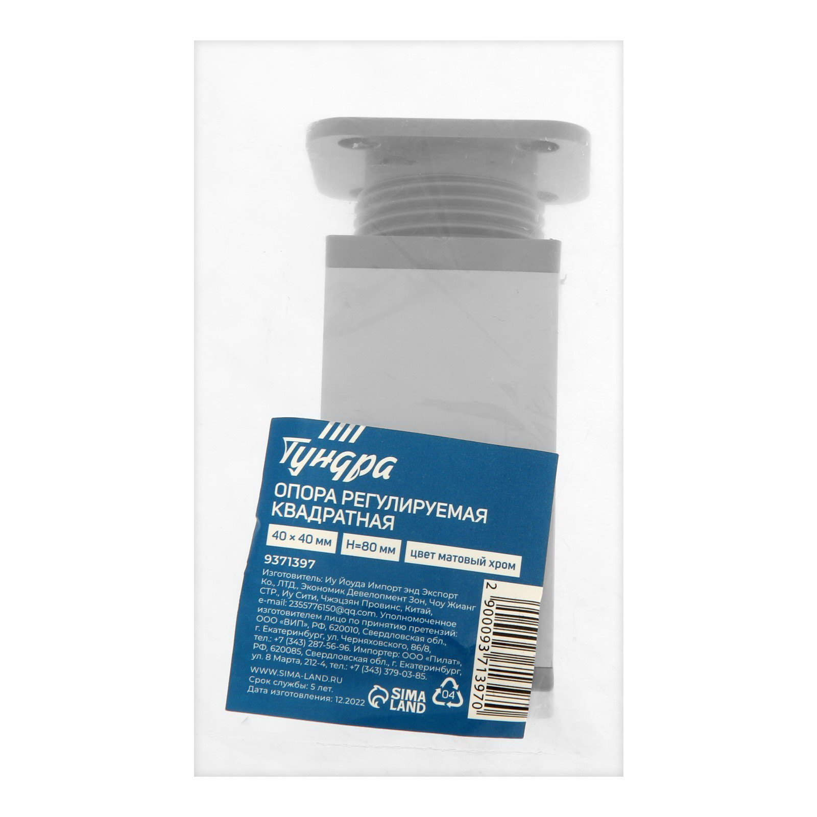 Опора регулируемая ORKV001CR квадратная, 40x40, H=80 мм, цвет матовый хром, 4 шт., ТУНДРА, Китай
