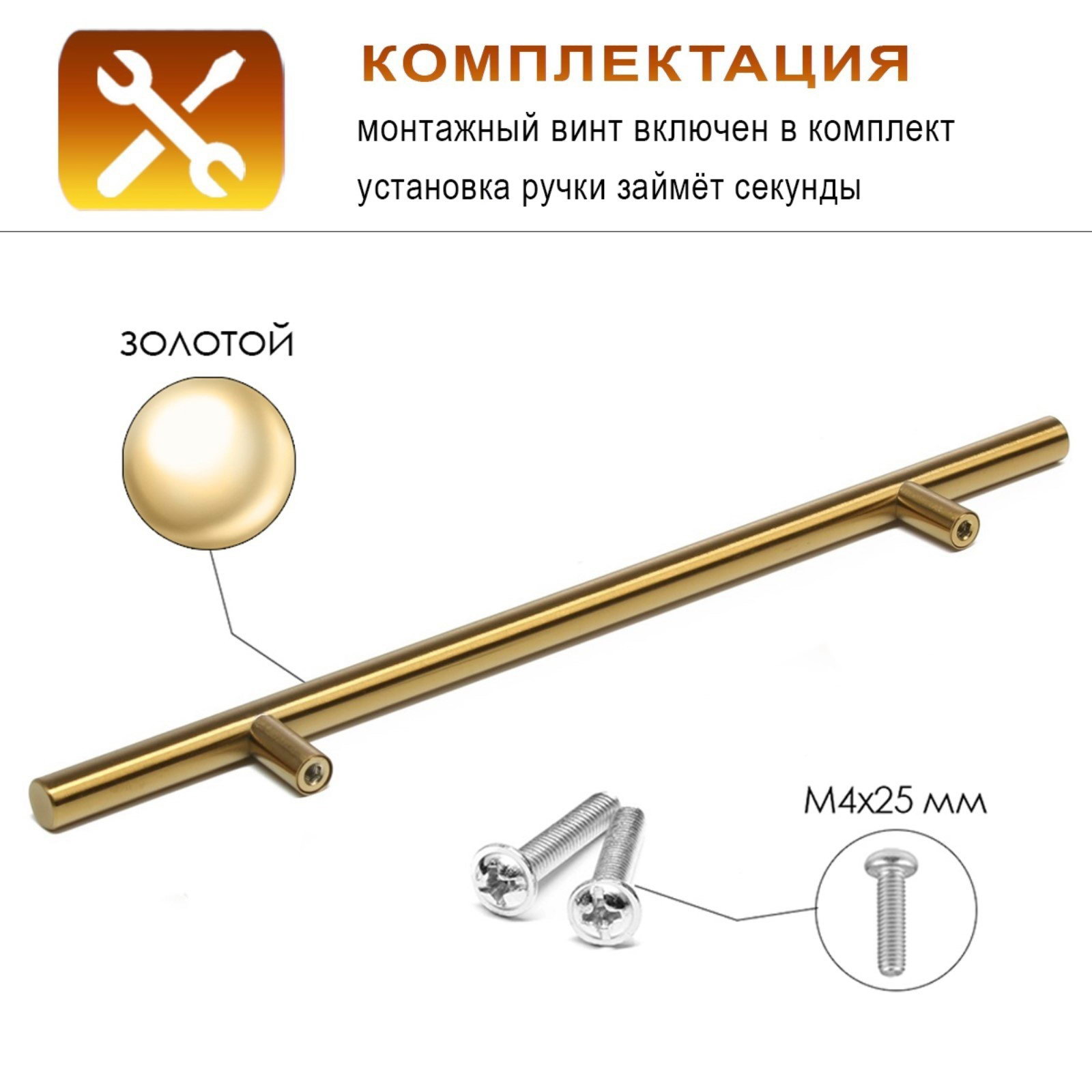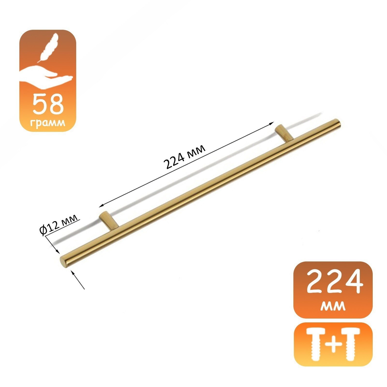 Размер упаковки: 5 x 3.5 x 37.5 см. Температурное ограничение: Нет Цвет: Золото Межосевое расстояние, мм: 224 tnved: 8302420000 | ||