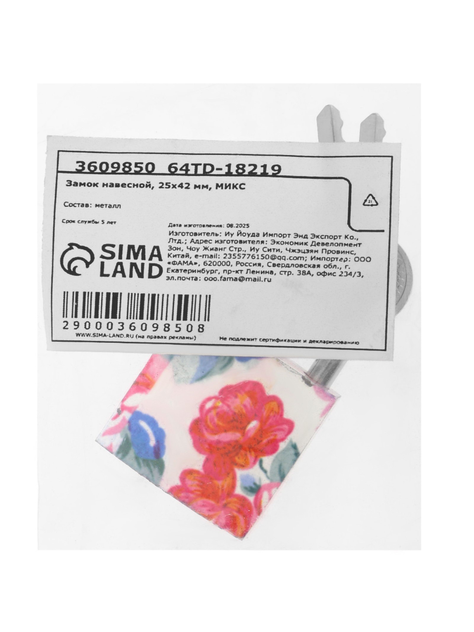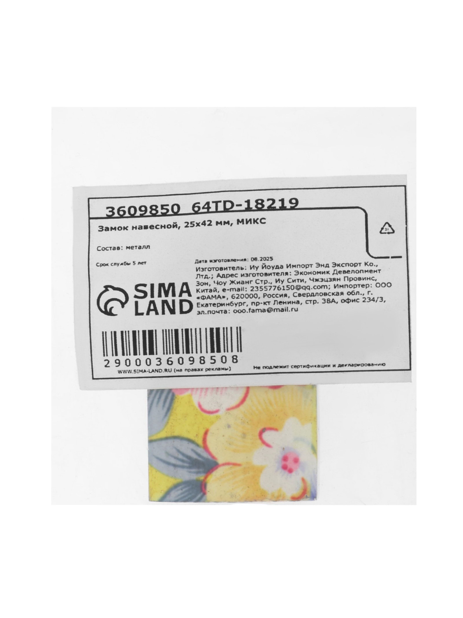 Замок навесной, 25x42 мм, МИКС, 1.2x2.5x4.2 см., ТУНДРА, Китай