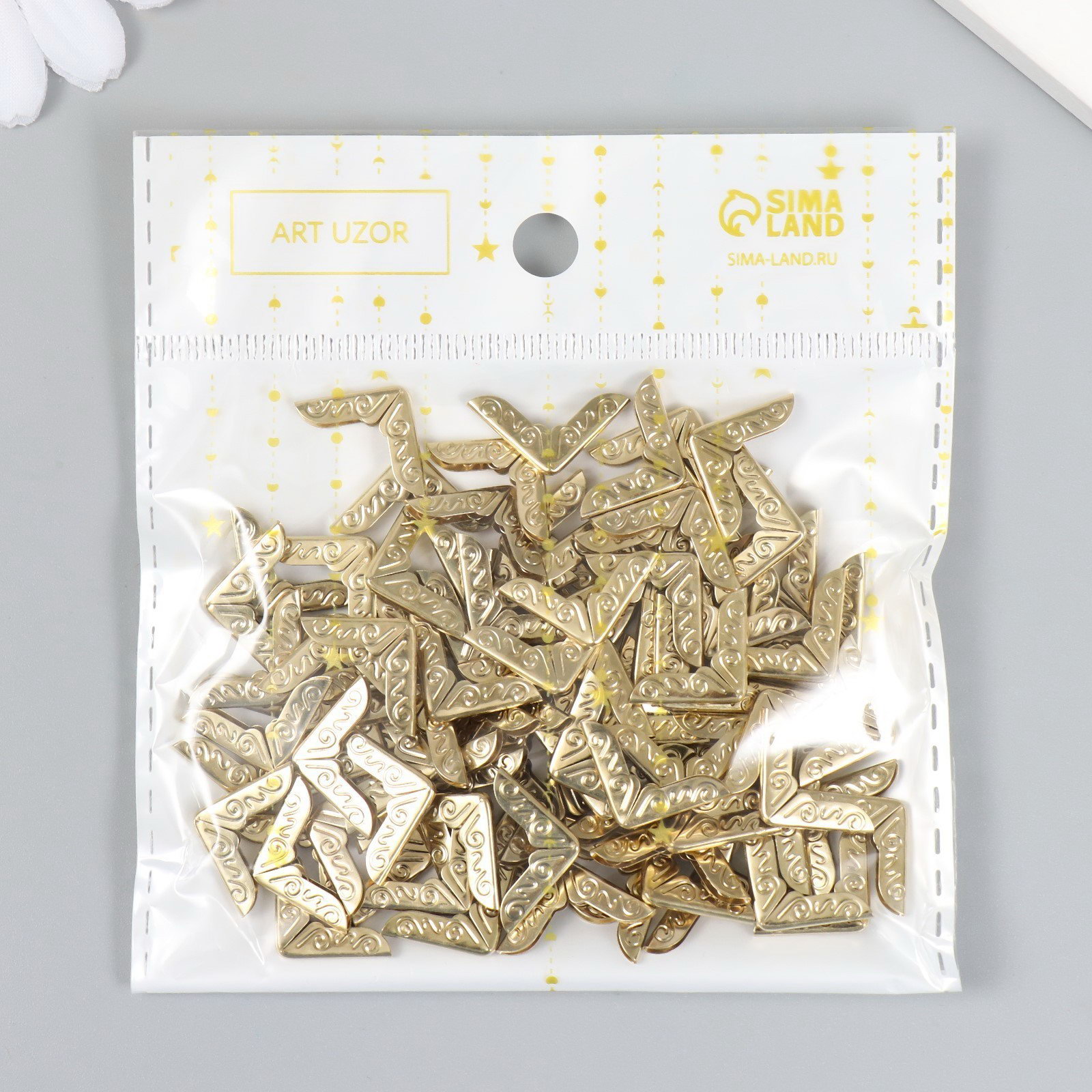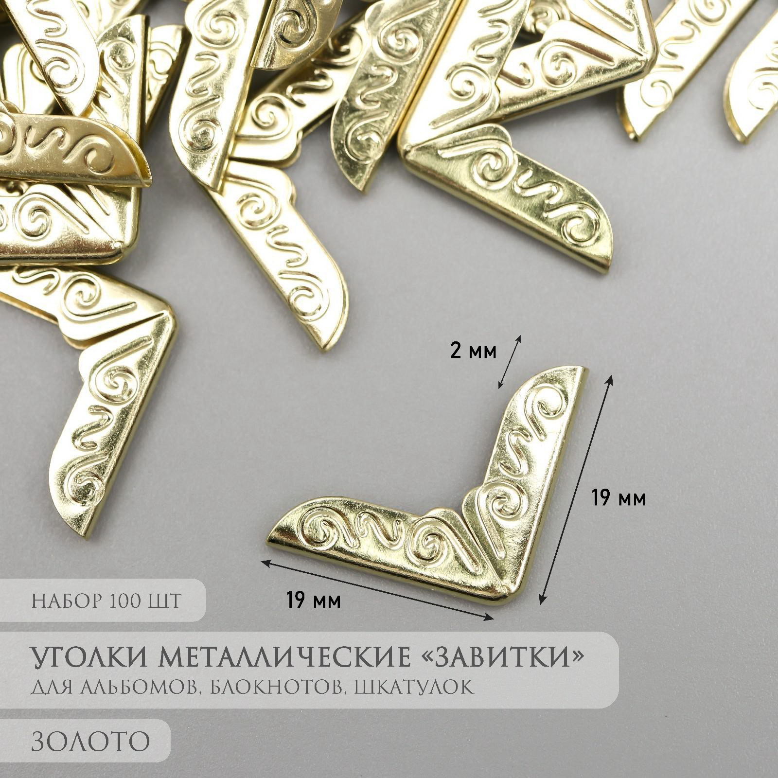 Защитный уголок для альбома металл "Завитки" набор 100 шт золото 1.4х1.4 см, 1.4x1.4 см., Арт Узор, Китай