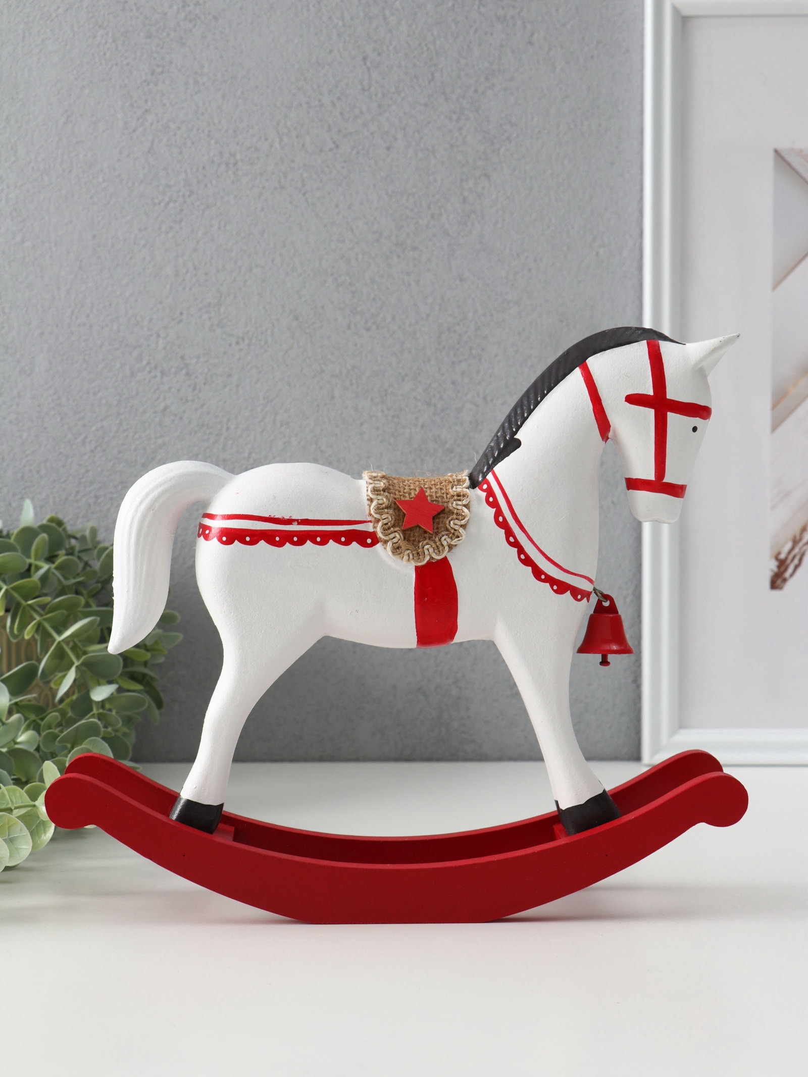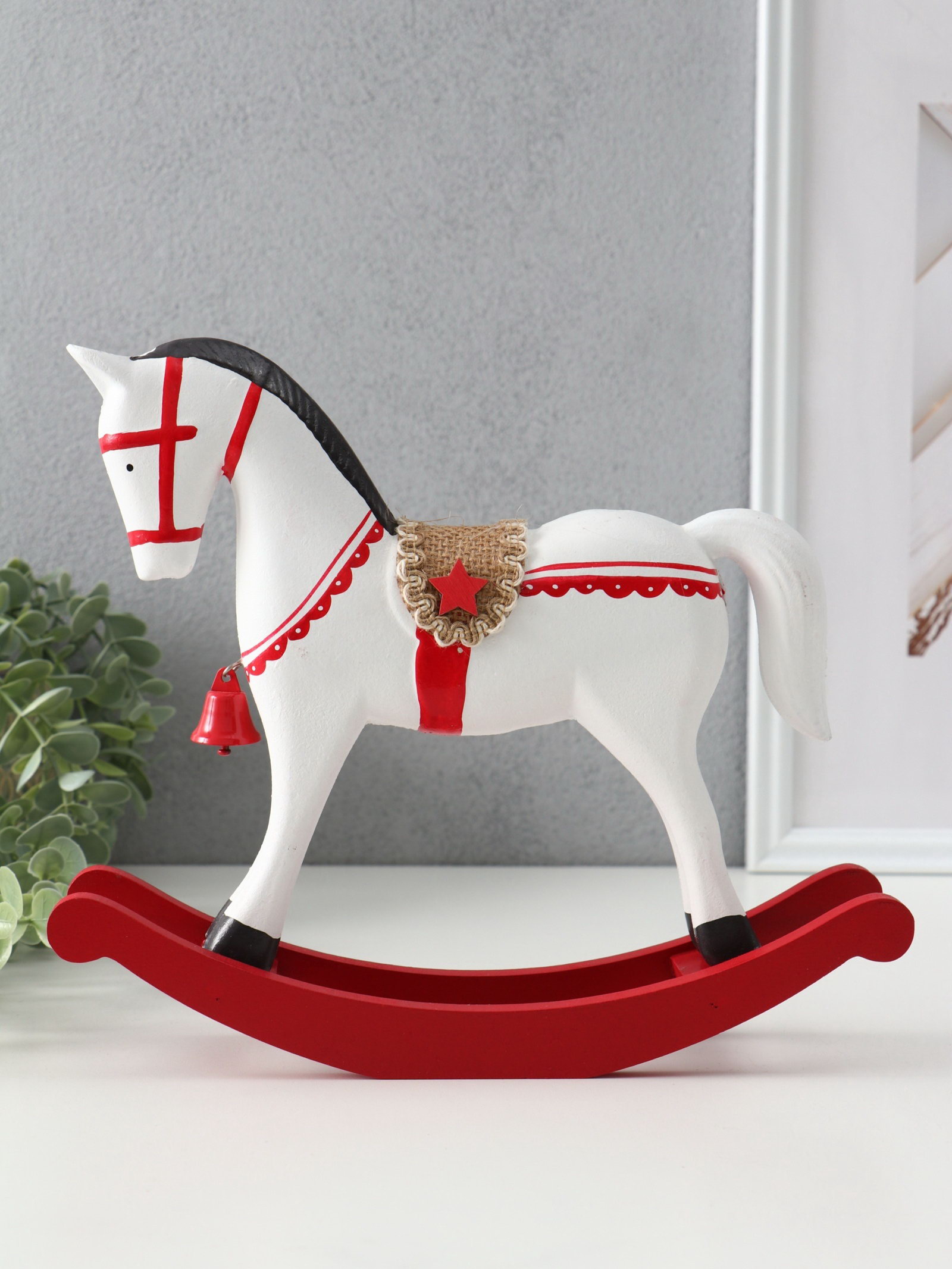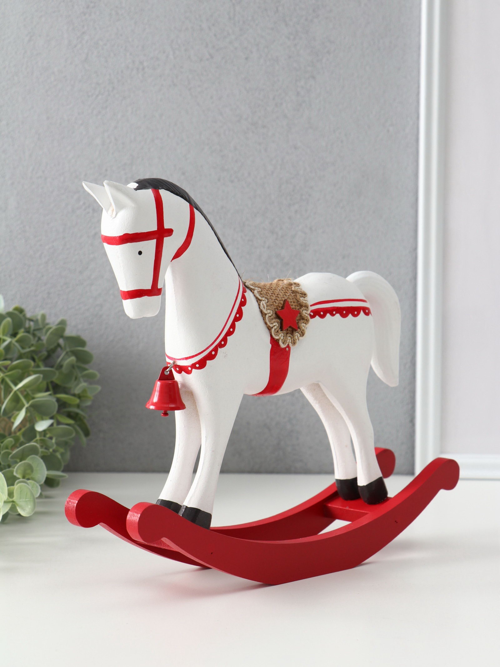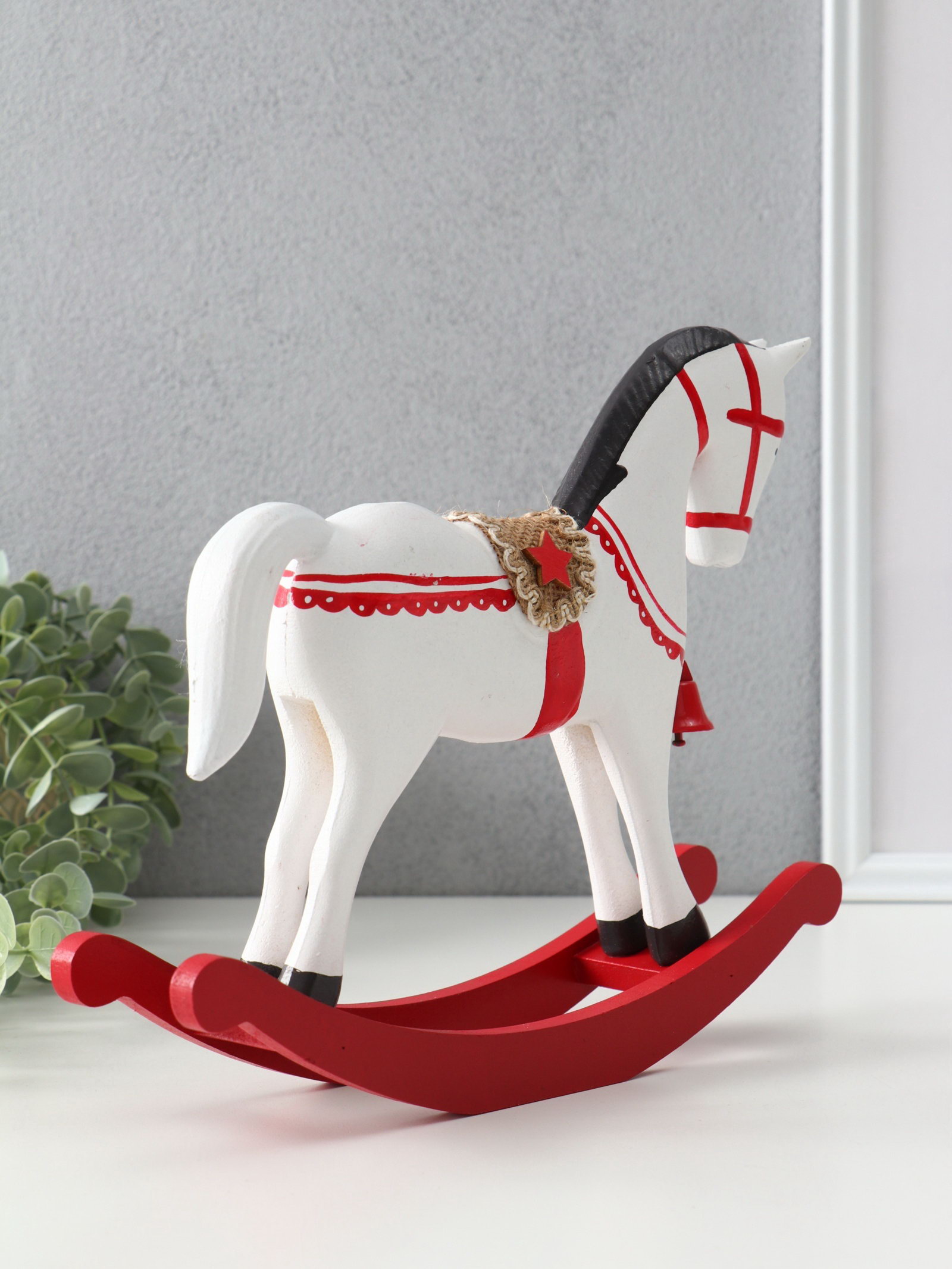 Фигура дерево "Лошадка-качалка", белая с красным декором, 26.5x6.5x22.5 см, 6.5x26.5x22.5 см., Китай