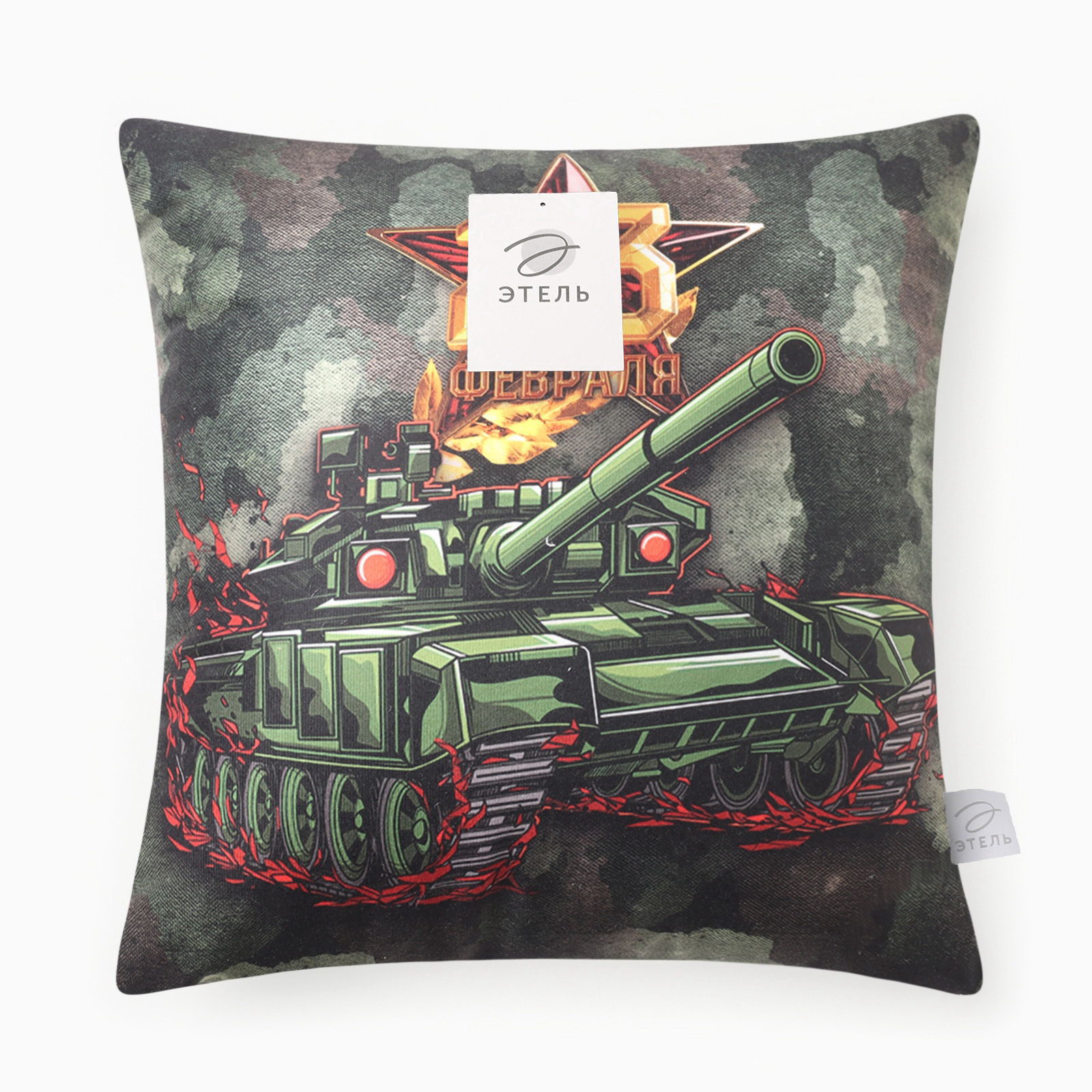 Подушка декоративная"Танк. 23 февраля", 40x40 см, велюр, Этель, Россия