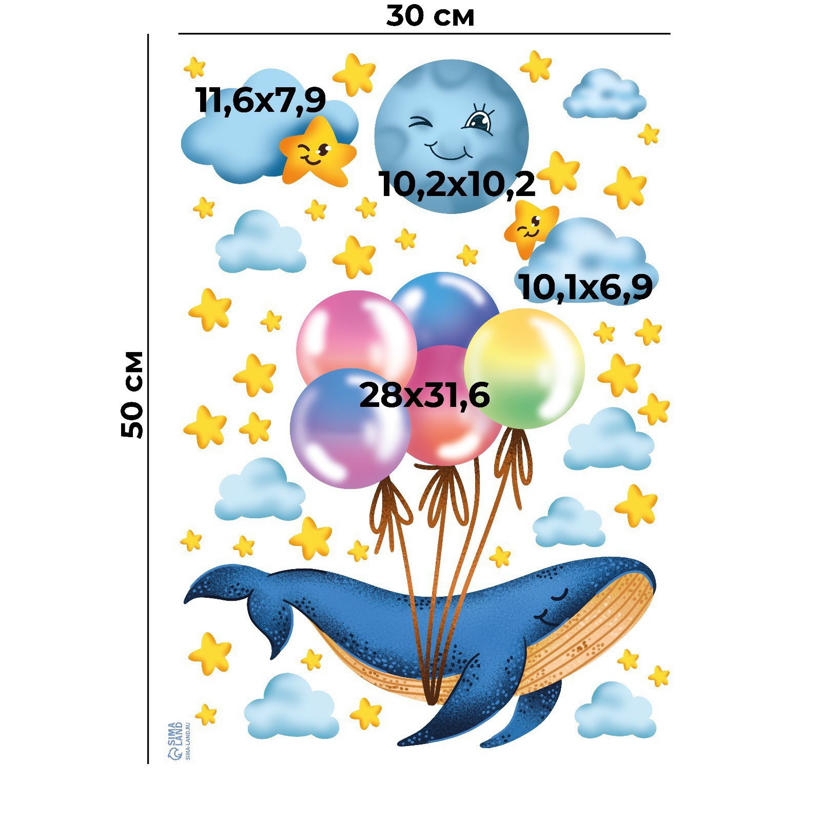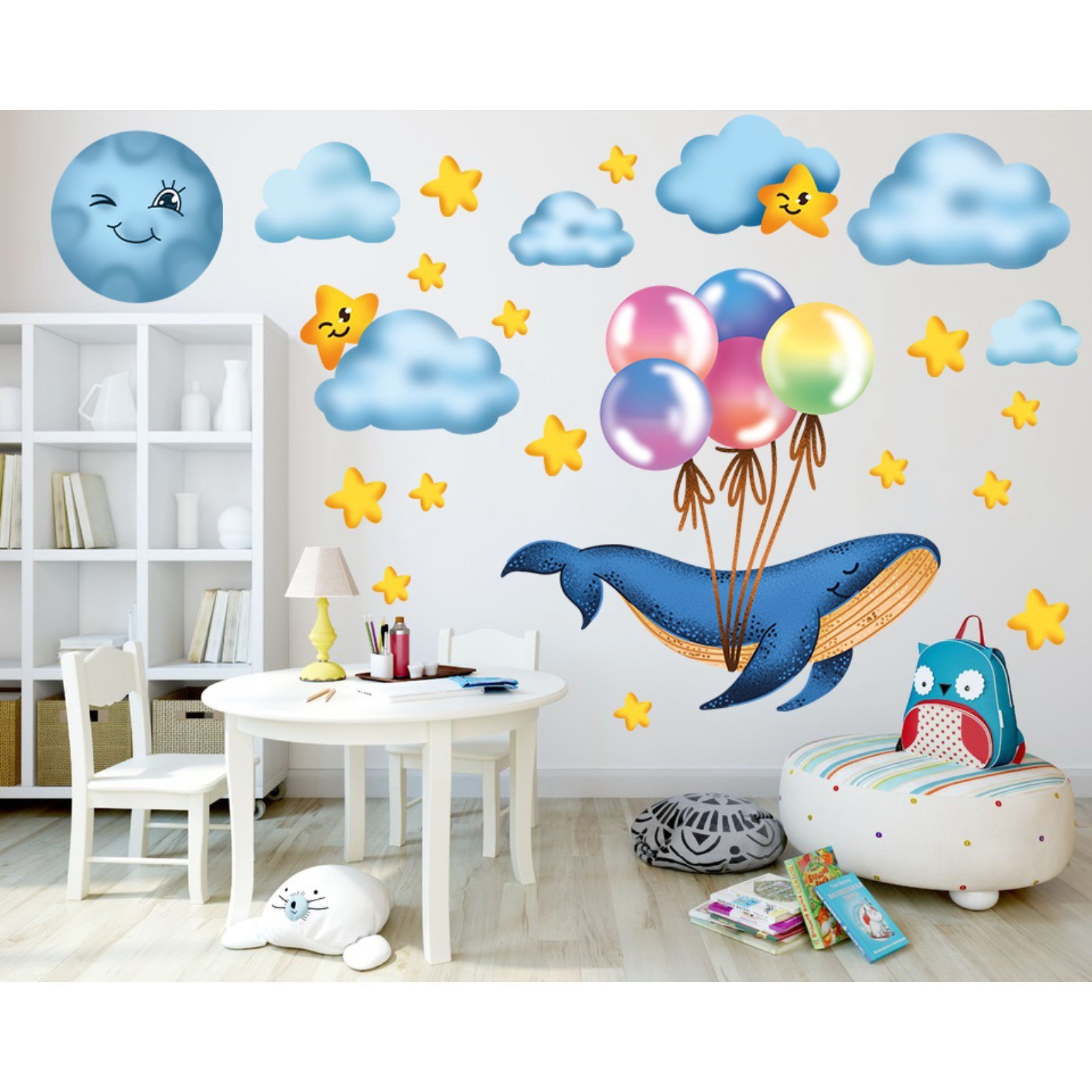 Интерьерная наклейка "Кит на шариках" 30х50 см, Divino, Россия