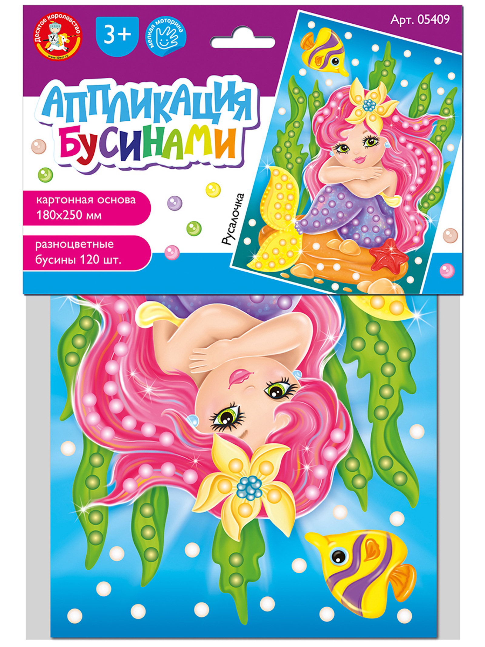 Аппликация бусинами "Русалочка", 18x25 см, набор для творчества, Десятое Королевство, Россия