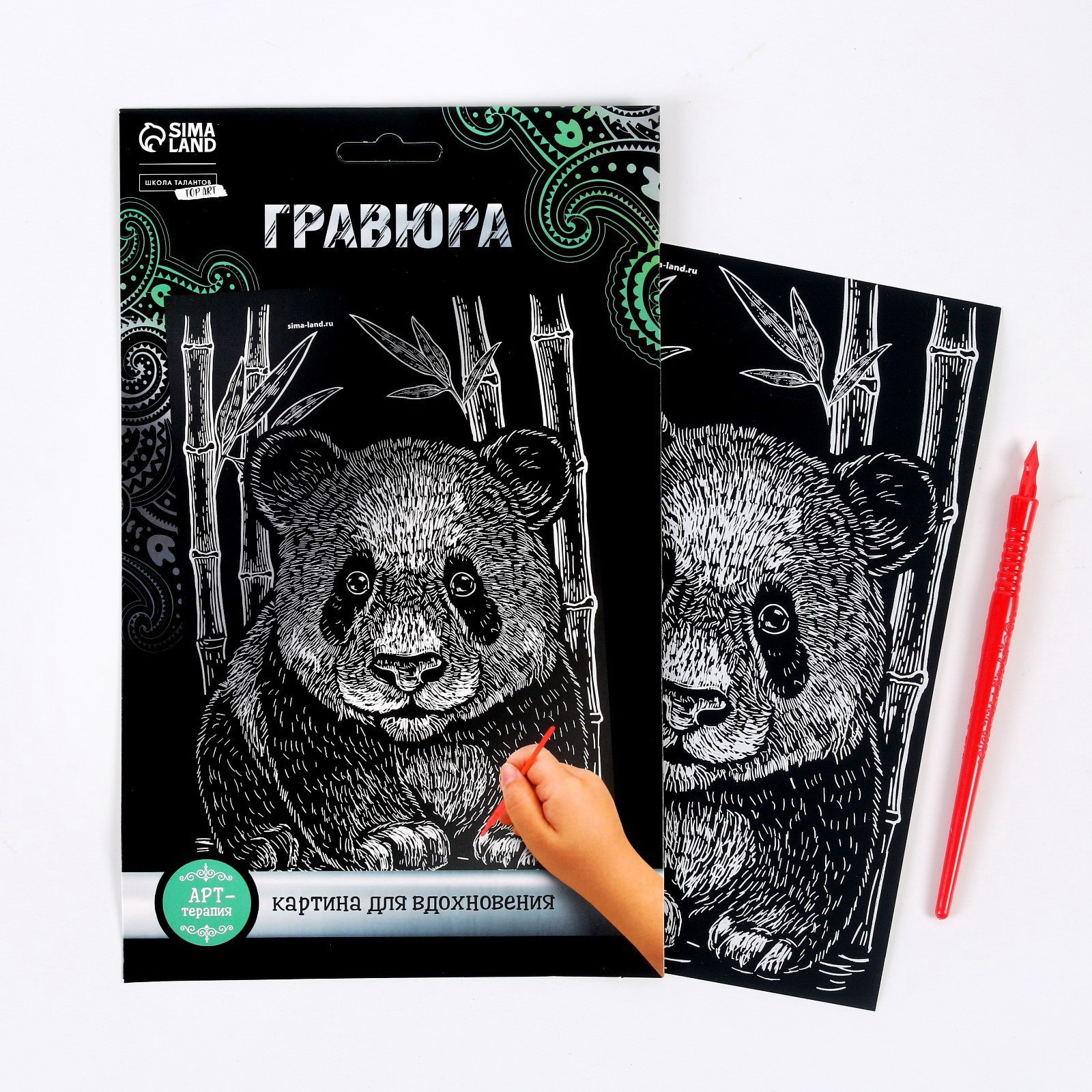 Гравюра "Панда" с металлическим эффектом "серебро" А5, 15.3x25x0.5 см., Школа талантов, Китай
