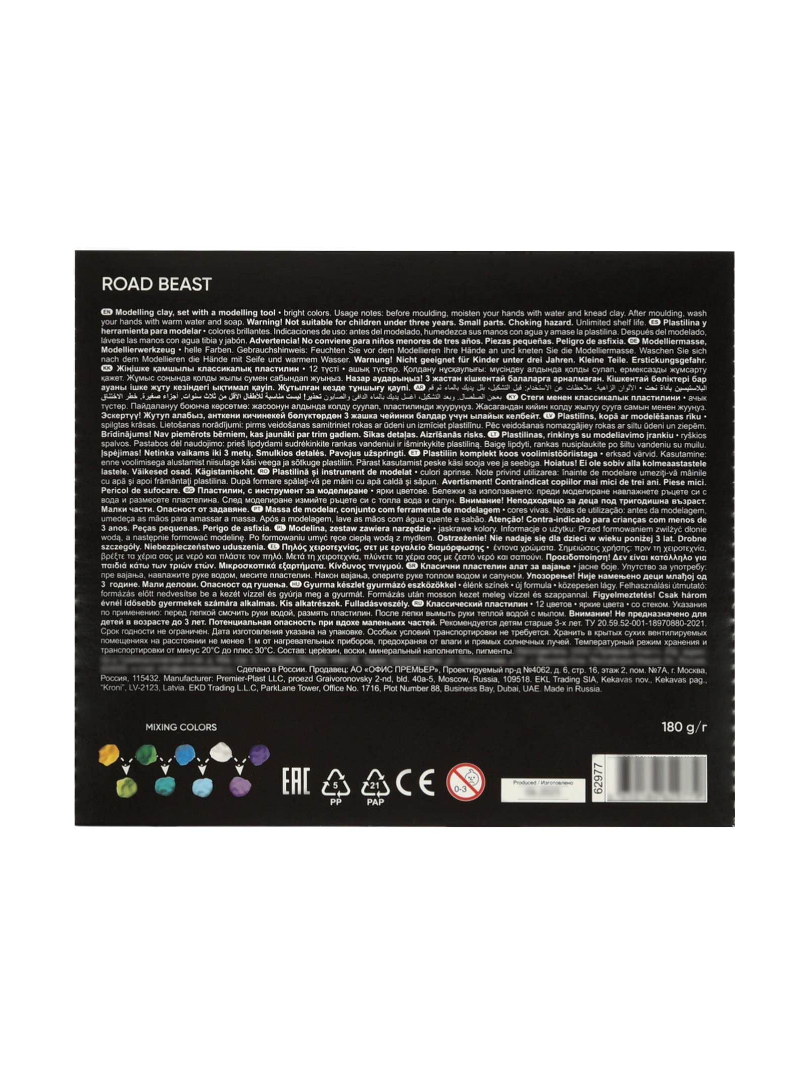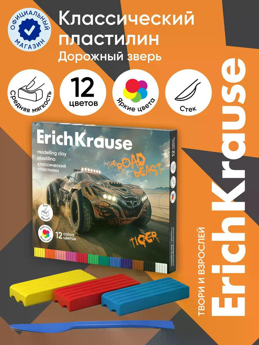Пластилин 12цв 180г Road Beast, со стеком, 1.8x15.3x17.5 см., ErichKrause, Россия